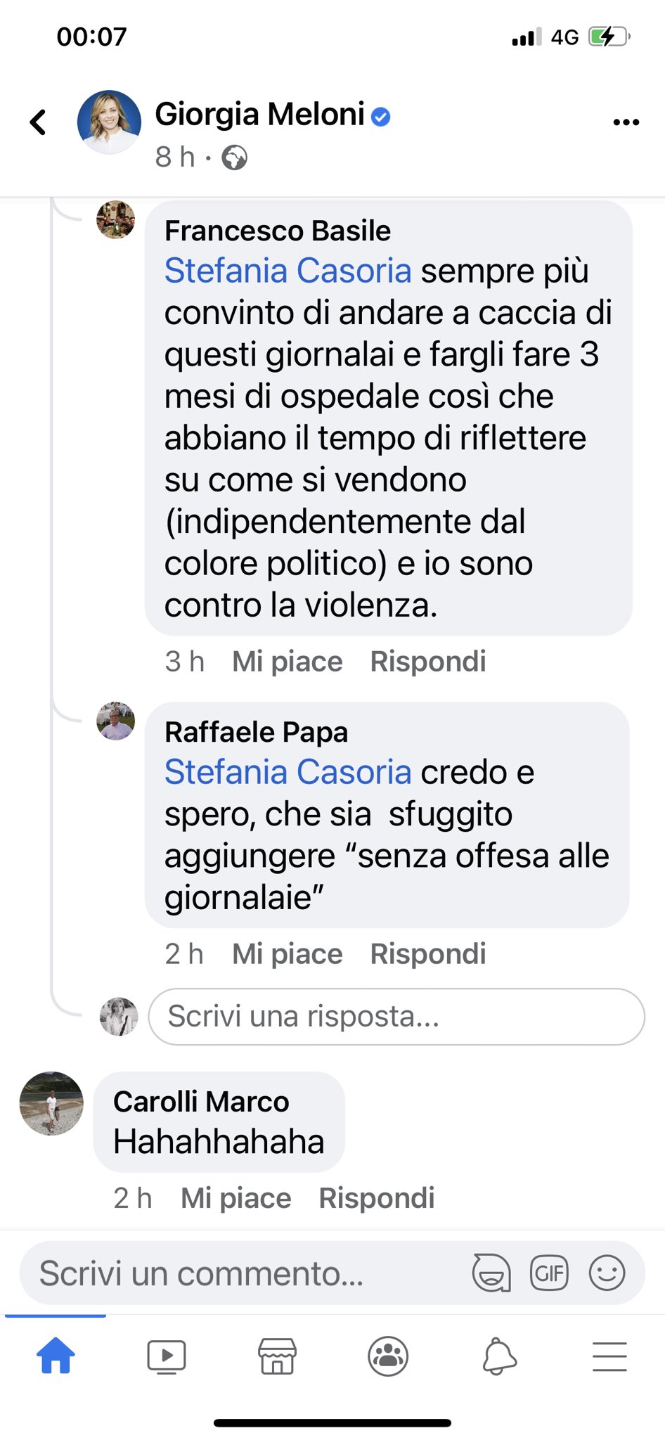 Peccato però che Meloni non dia spazio alla risposta della Cuzzocrea e pubblichi quindi sui social il tweet originale della giornalista e la sua precisazione. Risultato? Una orda di commenti, oltre 4mila, molti dai toni iper aggressivi.