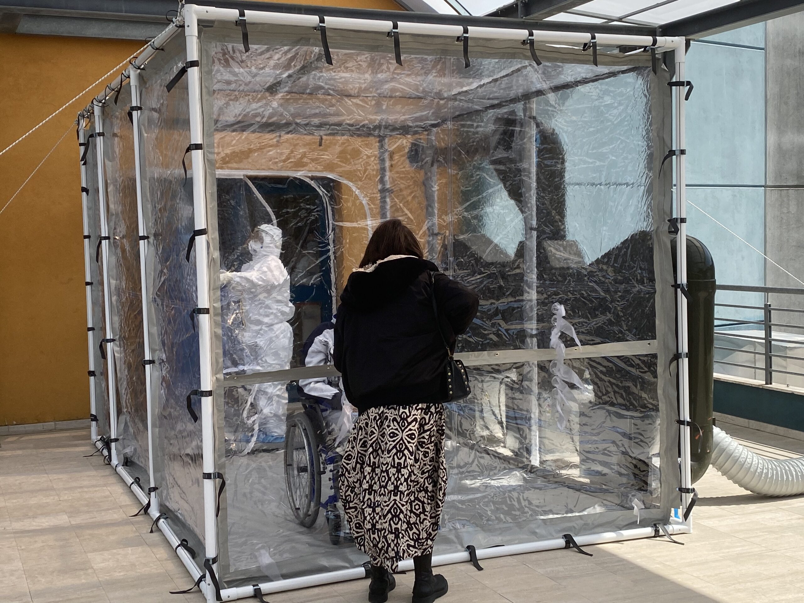 Nella struttura potrà accedere un solo paziente alla volta, accompagnato da un operatore sanitario e, per circa un quarto d’ora potrà vedere attraverso una parete trasparente massimo due familiari.