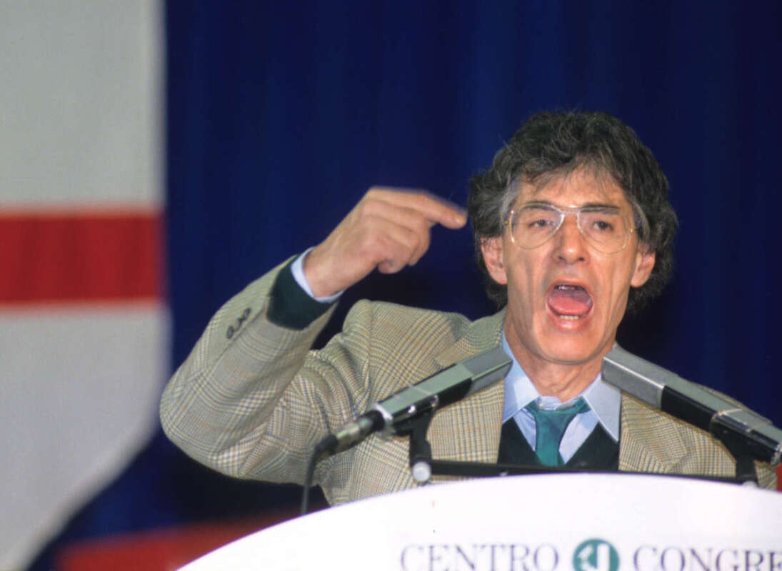 Umberto Bossi convocato in procura dal Pm Di Pietro, porta con sé un assegno da 200 milioni per restituire i soldi della Montedison.