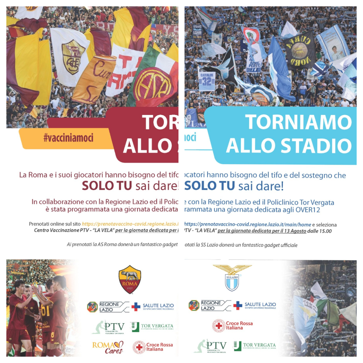 Con il claim “La Roma e i suoi giocatori hanno bisogno del tifo e del sostegno che solo tu sai dare!“, la Regione Lazio, in collaborazione con il Policlinico Tor Vergata, ha lanciato una giornata dedicata alla vaccinazione per i tifosi della Roma Over12. I tifosi possono prenotarsi per l’appuntamento vaccinale programmato il prossimo 12 agosto, dalle ore 15, sul sito sul sito https://prenotavaccino-covid.regione.lazio.it/main/home, selezionando Centro Vaccinazione PTV – “LA VELA”. Ai prenotati la AS Roma donerà un gadget ufficiale del club giallorosso.