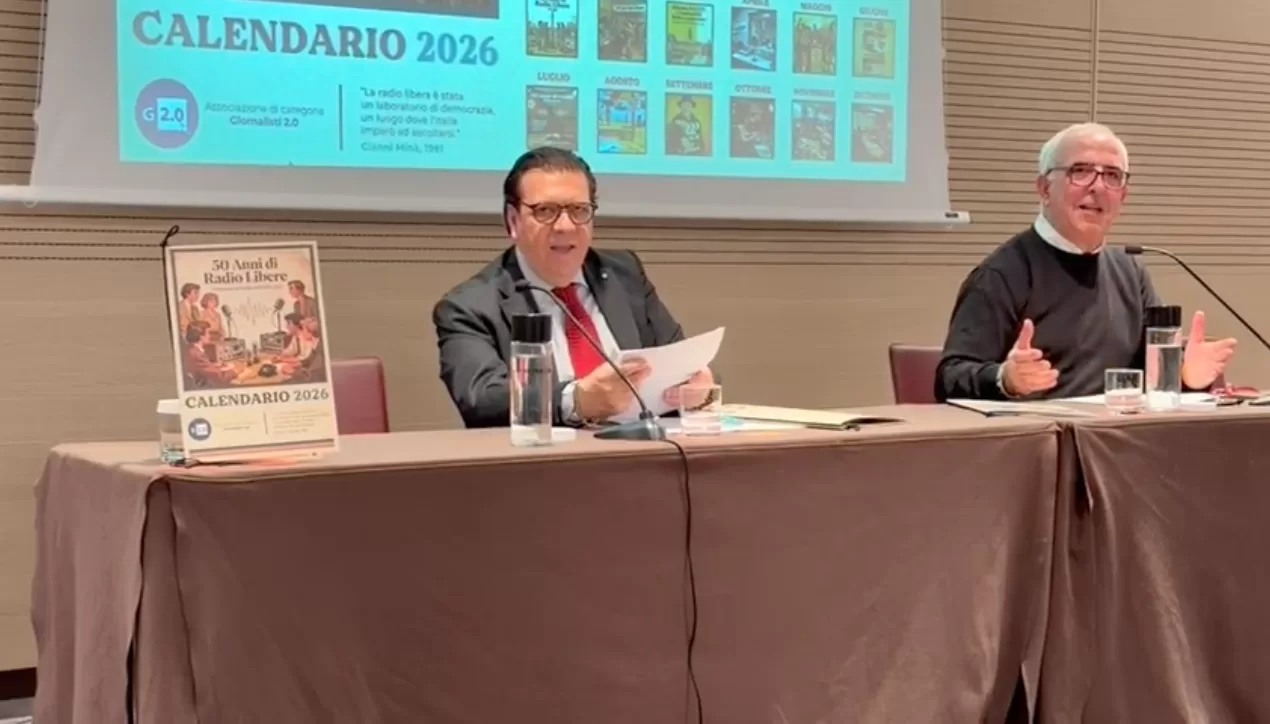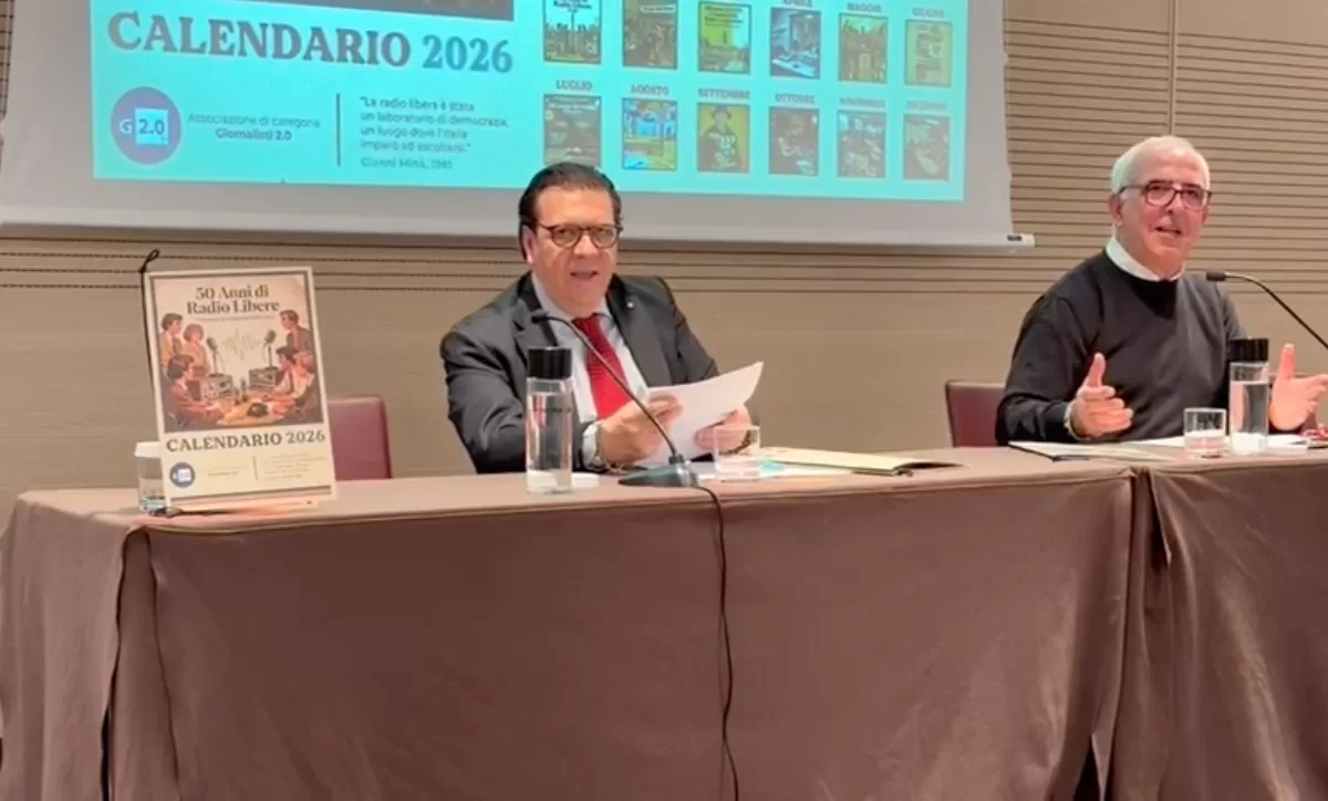In onda, fuori onda. Il linguaggio della radio è quello del giornalismo. E proprio alla radio è dedicato il calendario 2026 dell’Associazione di categoria Giornalisti 2.0, un progetto editoriale che unisce memoria, attualità e uno sguardo lungo sul futuro dell’informazione. I testi del calendario portano la firma del presidente di Giornalisti 2.0, Maurizio Pizzuto, realizzati in collaborazione con Ettore Midas e Gianni Garrucciu, a sottolineare un lavoro corale che mette al centro il ruolo sociale del giornalismo e i nuovi linguaggi della comunicazione, in un momento storico in cui l’affidabilità delle notizie è tornata tema cruciale. L’evento di lancio, all’Hotel Le Meridien di Roma, ha visto in platea un centinaio di giornalisti.
