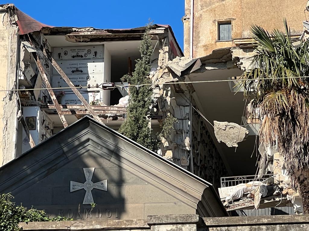 A gennaio scorso tutti ricorderanno il macabro scenario che si palesò agli occhi del custode: centinaia di resti di bare e corpi umani erano sepolti tra le macerie che impedivano il passaggio in una delle aree più antiche del cimitero di Poggioreale. Il crollo, si disse, poteva essere collegato in qualche modo ai lavori della Metropolitana, ma si è ancora in attesa che si faccia chiarezza sulle reali cause del cedimento. L’altro giorno, poi, un nuovo crollo. A venire giù è stata un’ala dell’edificio che fa riferimento all’arciconfraternita dell’Immacolata Concezione di San Gioacchino.