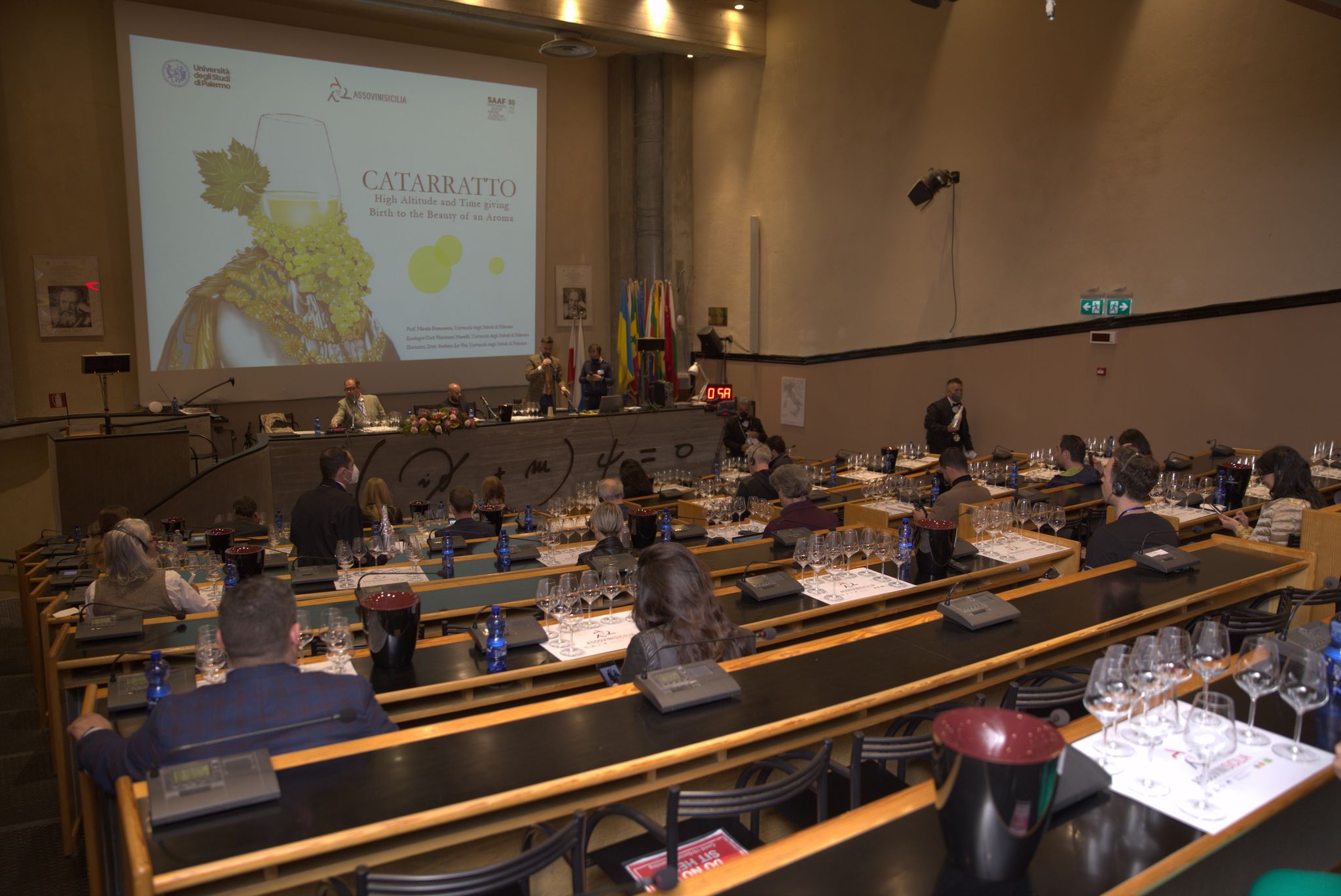 Molto interessante la masterclass sul Catarratto, condotta dal professore Nicola Francesca, dal giornalista enogastronomico Francesco Pensovecchio, insieme all’enologo Vincenzo Naselli: “Il Catarratto: Tempo e Altitudine per generare la bellezza di un aroma”. Parliamo della varietà di uva più presente in Sicilia, terza in Italia, entro le prime 10 nel mondo. Nel trapanese, il Catarratto è il vitigno fondamentale per il Marsala. Proprio a Marsala era scelto dalle famiglie per fare il “perpetuo”, il vino della festa. Il Catarratto si caratterizza soprattutto per l’equilibrio nel gusto e per la longevità, caratteristiche che lo distinguono dalla potenza e dalla complessità aromatica del Grillo. La tendenza di questi ultimi anni è quella di spingere questo vitigno oltre una certa altimetria in virtù della sua plasticità e adattabilità allo scopo di amplificarne il vigore e potenziarne la complessità aromatica che, specie nei vini più giovani, può apparire debole. Il Catarratto reagisce bene a varie tipologie di suolo e alle temperature e, quando viene coltivato ai 300-400 metri è capace di liberare meglio nel tempo i suoi aromi. Vitigno molto resiliente, offre plasticità e duttilità nella coltivazione. Esprime una grande acidità, ma bisogna aspettarlo un po’ per avere la stabilità aromatica. Nel tempo, però, non tradisce manifestando – come emerge anche dalla degustazione alla cieca svoltasi a Erice – sentori di idrocarburi, paglia e fieno, camomilla. Se, in passato, si puntava molto alla ricerca del tropicale e del fruttato, oggi si comincia a investire sulla ricerca dei titoli, con una prevalenza delle note agrumate più fresche. Il Catarratto resta comunque un vino austero e riservato, per il quale avrebbe senso immaginare anche un