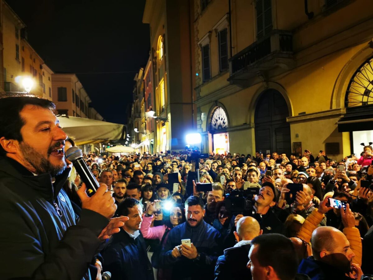 Sull’onda del boom alle Europee e della conquista dell’Umbria, Matteo Salvini punta adesso l’Emilia Romagna. A Parma il comizio d’apertura della campagna elettorale che ha visto il leader della Lega, in compagnia della candidata presidente Lucia Borgonzoni, lanciare messaggi contro la sinistra, che amministra la Regione da decenni. “Segnatevi sull’agenda il 26 gennaio 2020, dopo 50 anni la sinistra va a casa dall’Emilia e dalla Romagna” ha annunciato Salvini alle centinaia di persone presenti, forte anche dei sondaggi degli ultimi giorni.