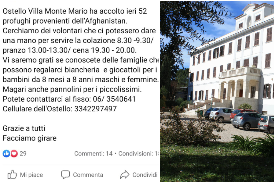È bastato un post sul gruppo Facebook di quartiere per scatenare una vera gara di solidarietà per i bambini profughi afghani all’Ostello Villa Monte Mario. Uno stop alle donazioni di giocattoli e vestiti usati che rispondeva alla richiesta di aiuti per 52 donne e bambini afghani ospitati nella struttura. L’appello ha fatto il giro dei social network e hanno risposto centinaia di persone. La motivazione dell’interruzione della richiesta di aiuti da la portavoce del Forum del Terzo Settore del Lazio: “Non possiamo accettare oggetti usati per questioni di sicurezza legate al Covid”.