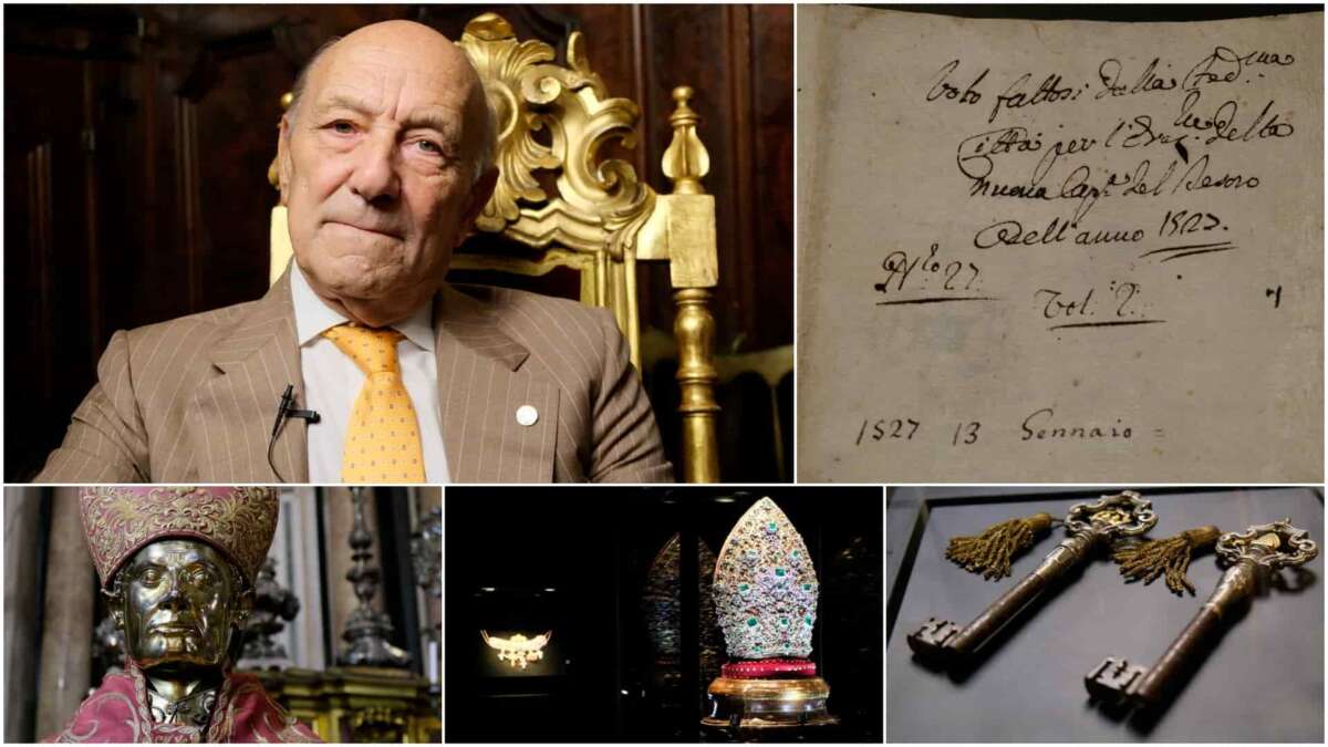 “Si è voluto mantenere questa rappresentazione storica perché è una rappresentazione democratica anche. Ha valore perché mantiene la storicità di certe famiglie. In questa deputazione ci sono famiglie che sono qui da 500 anni”. E conclude: “Tutto questo può sembrare qualcosa che ai nostri tempi non ha ragione di essere. Invece, per noi napoletani, la cappella del tesoro di san Gennaro e il Tesoro, sono la storia della nostra città. La grandezza, la povertà, le cose eccezionali di Napoli, passano tutte per San Gennaro. E il santo resta ed è il cuore di Napoli”.