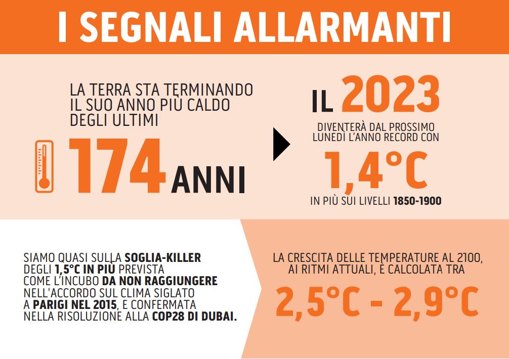 E se il decennio 2010-2020 era stato archiviato come il più caldo in un secolo e mezzo di rilievi e con temperatura media globale a più 1,1°C sull’era preindustriale, il 2023 diventerà dal prossimo lunedì l’anno record con 1,4°C in più sui livelli 1850-1900. Ciò significa che siamo quasi sulla soglia-killer degli 1,5°C in più prevista come l’incubo da non raggiungere nell’accordo sul clima siglato a Parigi nel 2015, e confermata nella risoluzione alla Cop28 di Dubai. Ma la crescita delle temperature al 2100, ai ritmi attuali, è calcolata tra 2,5°C e 2,9°C, e gli impatti saranno disastrosi soprattutto sulla nostra penisola diventata bersaglio dei effetti climatici nell’area mediterranea. Dall’ultima modellistica del Centro Euro-Mediterraneo sui Cambiamenti Climatici alle proiezioni di Cnr, Enea, Ispra, e del Dipartimento nazionale della Protezione Civile, si elencano aumenti di frequenza e intensità di ondate di calore con siccità, alluvioni, rischi produttivi, aumento del livello del mare. Del resto, a scuotere il governo basterebbe una gita sulle Alpi per immergersi nell’anomala normalità di questo Natale quasi senza neve e dove si scia sulla neve artificiale con temperature intorno ai 20 gradi. Non si tratta oggi di evitare i danni, ma di limitare i danni. Rinviare e cincischiare tenendo a bagnomaria il Piano di Adattamento sarebbe folle di fronte a rischi anche per intere filiere economiche.