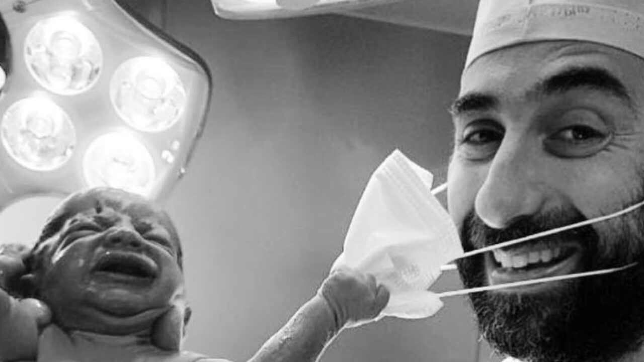 È diventata virale in tutto il mondo la foto in bianco e nero che ritrae il bambino appena nato che tira la mascherina al dottore. E la frase “vogliamo tutti un segno del fatto che presto toglieremo le mascherine”. La foto è diventata subito il segno della speranza e il sorriso del dottore ha scaldato i cuori a ogni latitudine.