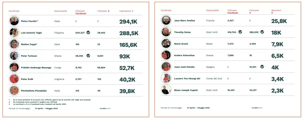 Consistente anche il recupero del cardinale Matteo Zuppi. Attenzione però al cardinale statunitense Timothy Dolan, che ha entrambi gli account social verificati e sta facendo registrare negli ultimi giorni una crescita di audience.