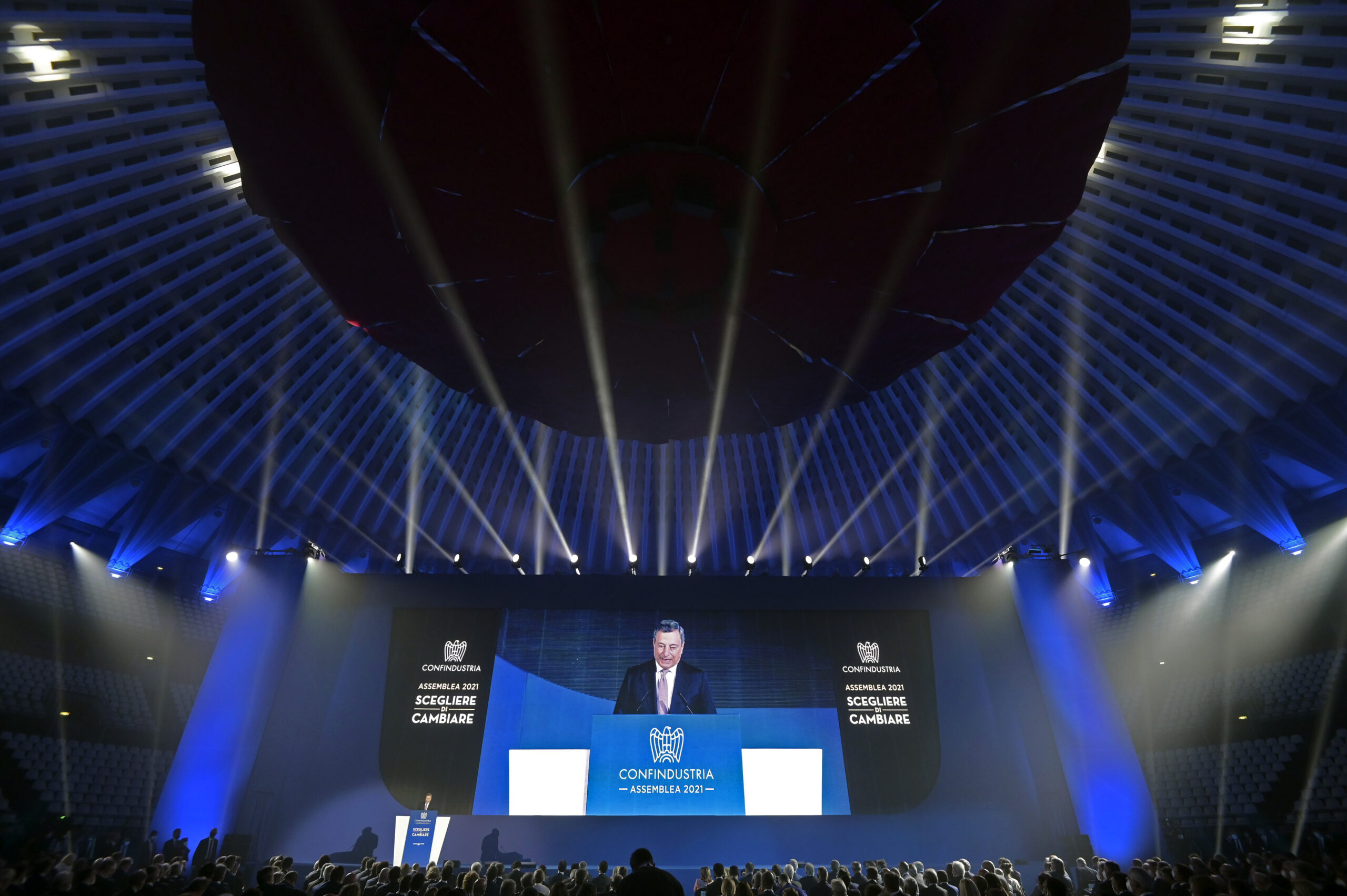 Soprattutto, nel discorso, Draghi si è riferito più volte alla tenuta e alla qualità delle relazioni industriali fino a raccogliere la proposta del presidente Bonomi, pur ridimensionandone la solennità: non si usa la parola “patto”; ci si accontenta di “una prospettiva economica condivisa”. Hanno colto tutti di sorpresa alcuni brani non previsti nel testo distribuito, anche alle agenzie, ma pronunciato a braccio dal presidente (i suoi collaboratori raccontano che l’ispirazione gli sia venuta dal film proiettato in apertura dove veniva rievocato il “miracolo economico”). «Le buone relazioni industriali sono il pilastro di questa unità produttiva. Questa frase viene da un’apparente somiglianza tra la situazione di oggi e la situazione del dopoguerra, come ricordava il Presidente Bonomi prima e il filmato – bellissimo fra l’altro – d’introduzione. C’è stata una catastrofe come allora, c’è una forte ripresa come allora, con dei tassi che credo abbiamo visto soltanto in quegli anni; i tassi di crescita di oggi li abbiamo visti forse negli anni 60, sicuramente negli anni 50. Quindi mi è venuto spontaneamente di chiedermi: come mai si sono interrotti questi tassi di crescita? Come mai – come mi disse un amico di un altro Paese, all’epoca, nel ‘71, ‘70 – il giocattolo si è rotto? Beh, evidentemente le mutazioni del quadro internazionale, l’abbandono del sistema di Bretton Woods, il prezzo del petrolio, due guerre, la fine della guerra in Vietnam, la grande inflazione, sono tutte cose che hanno cambiato il quadro internazionale.