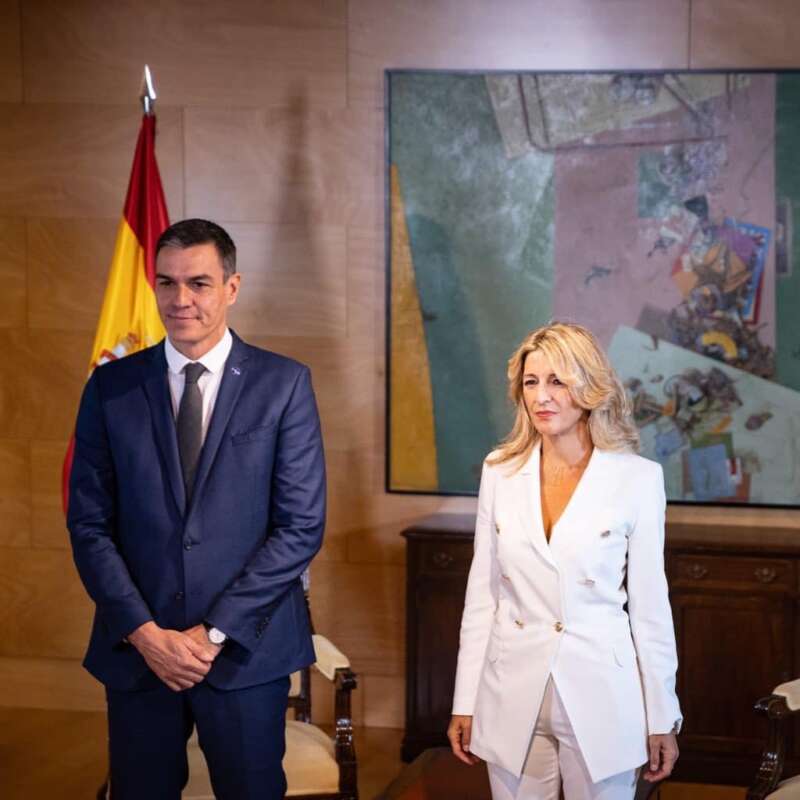 Il patto è fatto. Certo, è il più semplice tra tutti, ma intanto l’accordo suggellato ieri tra il segretario del Partito Socialista Pedro Sánchez e la leader della sinistra-sinistra di Sumar Yolanda Díaz è il primo, importante passo per permettere al gatto dalle sette vite di tornare alla Moncloa, il Palazzo Chigi spagnolo. I due ieri, nella loro prima riunione dopo l’incarico a Sánchez da parte del Re, hanno concordato di “intensificare e accelerare” i negoziati tra le due forze per sigillare un patto durante il mese di ottobre che permetta di formare un nuovo esecutivo progressista.