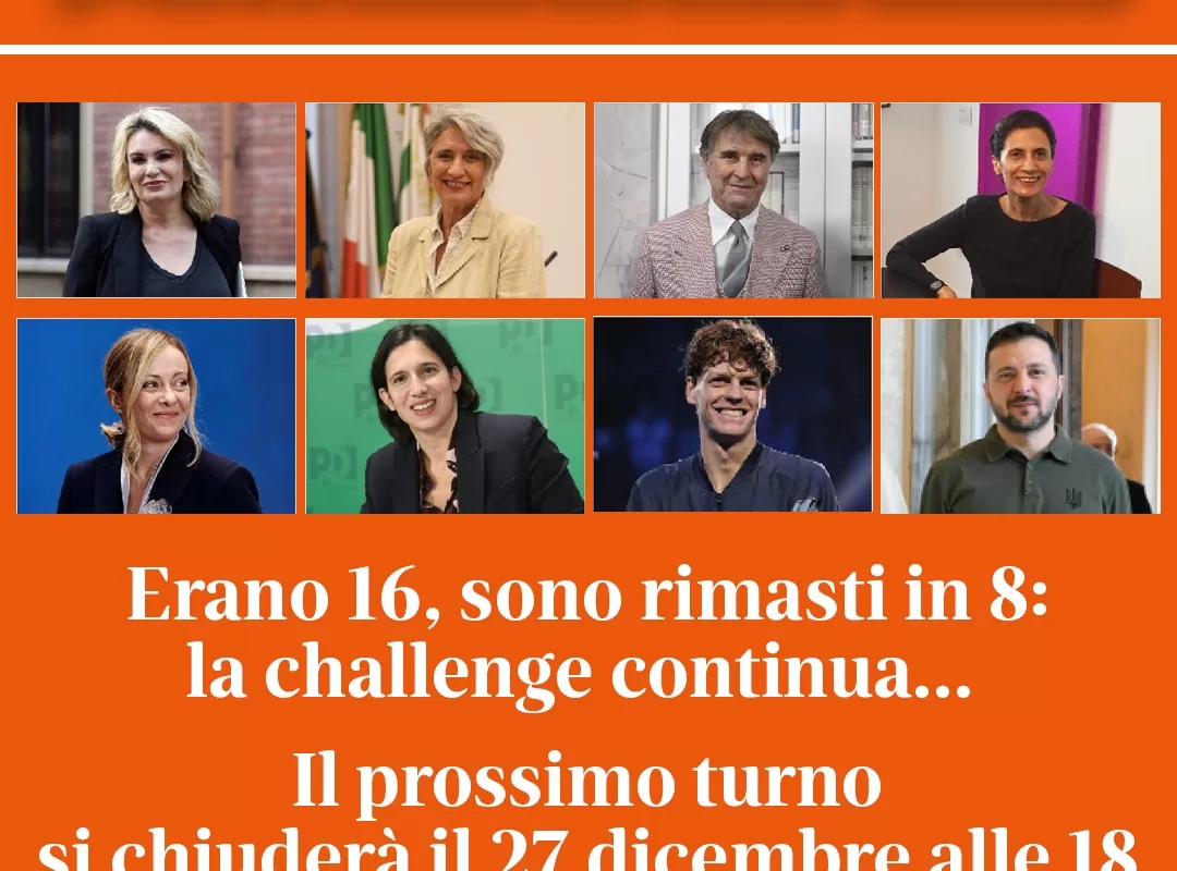 Non è il Pantheon dei riformisti, ma neppure un gioco. Siamo partiti da sedici persone che vogliono cambiare le cose, ognuna nel proprio ambito La prima fase di qualificazione si è conclusa lunedì 23 dicembre alle ore 18. Da oggi, 24 dicembre, inizia la seconda fase con otto candidati che si concluderà il 27 dicembre alle ore 18.