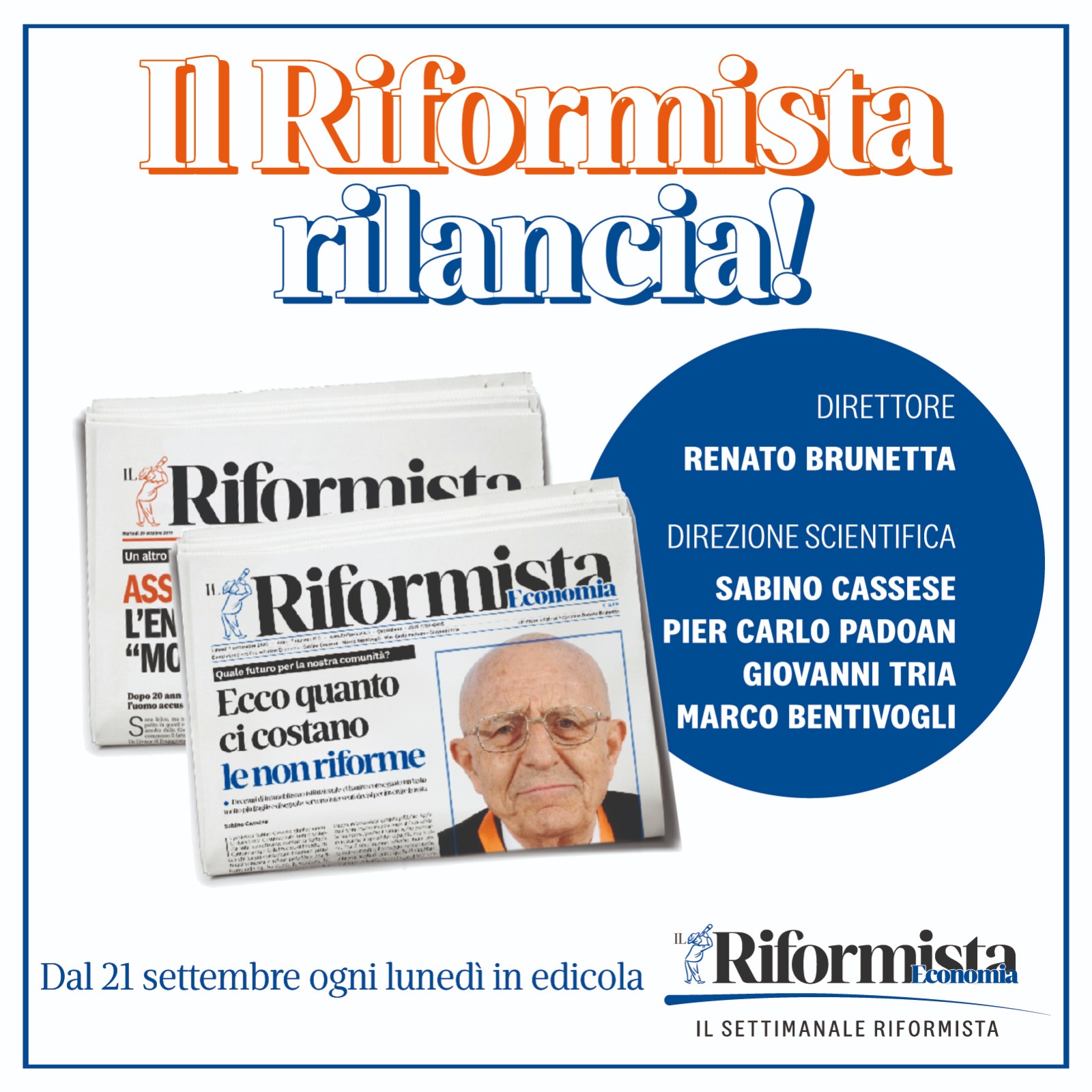 Da lunedì 21 settembre Il Riformista sarà in edicola con un nuovo numero settimanale dedicato all’economia. Con questa nuova iniziativa editoriale Il Riformista Economia, coordinata da Renato Brunetta e diretta da straordinarie personalità del mondo accademico come Sabino Cassese, Pier Carlo Padoan, Giovanni Tria e Marco Bentivogli, proporrà ai lettori focus sui temi economici e strategici contribuendo così alla definizione di un’agenda delle riforme da attuare in Italia.