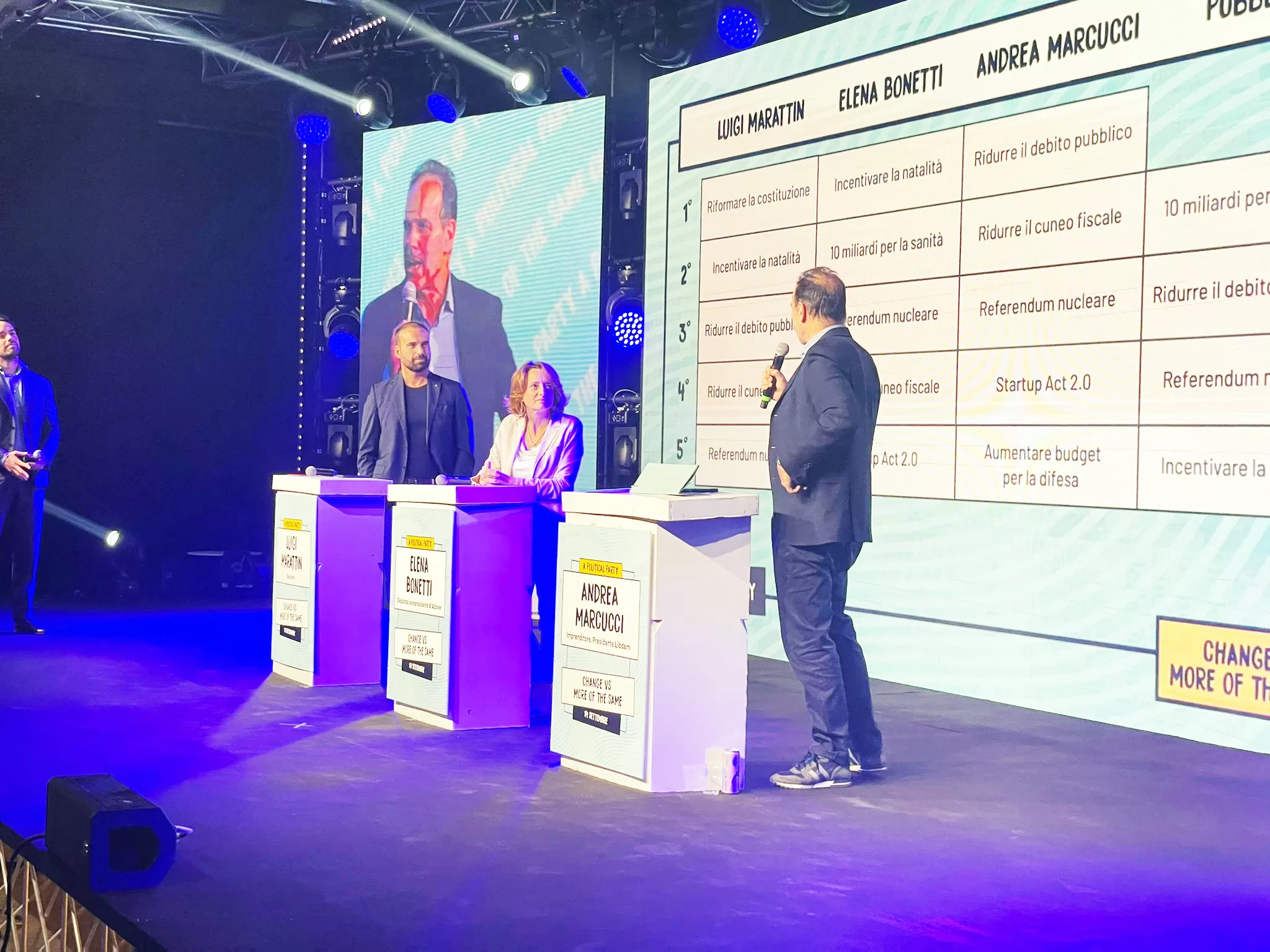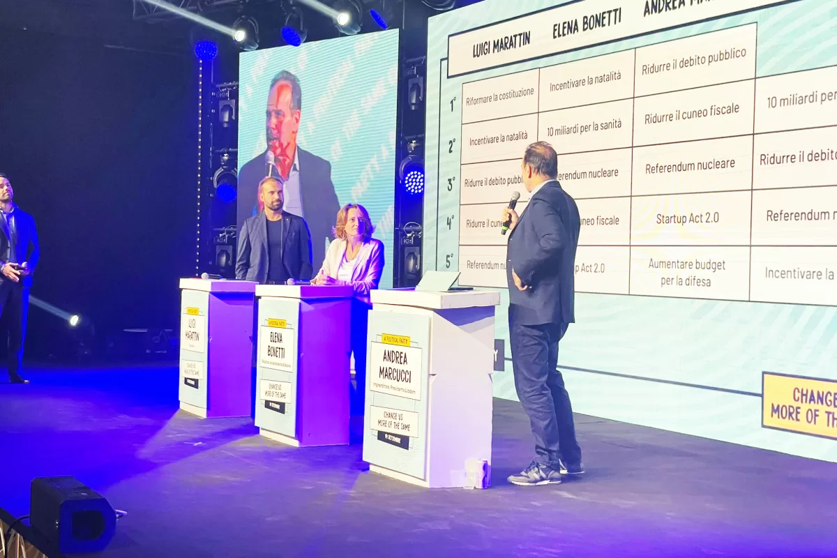 Marattin, uscito da Italia Viva solo la settimana scorsa, ha avviato la creazione di Orizzonti Liberali. Marcucci, dal canto suo, sta trasformando la sua associazione Libdem in un partito vero e proprio. I due, insieme a Nos, danno appuntamento per il varo del nuovo partito liberaldemocratico nelle date del 23 e 24 novembre. Conditio sine qua non: tenere il nuovo progetto politico lontano dai (due) litiganti. Ma anche dai due poli. Tenendo fede ad una vocazione unitaria e autonomistica. Ad alternarsi sul palco giovani e meno giovani, volti noti e meno. Elena Bonetti, vicepresidente di Azione, e Oscar Giannino, noto per aver fondato Fare per Fermare il declino. Piercamillo Falasca, Alessandro De Nicola, Carolina Nizza e l’economista Carlo Alberto Carnevale Maffé. Tante le attività “giocose” organizzate dai promotori. Ciascun partecipante in sala aveva due cartellini, verde e rosso, per dire cosa approvava e cosa disapprovava.