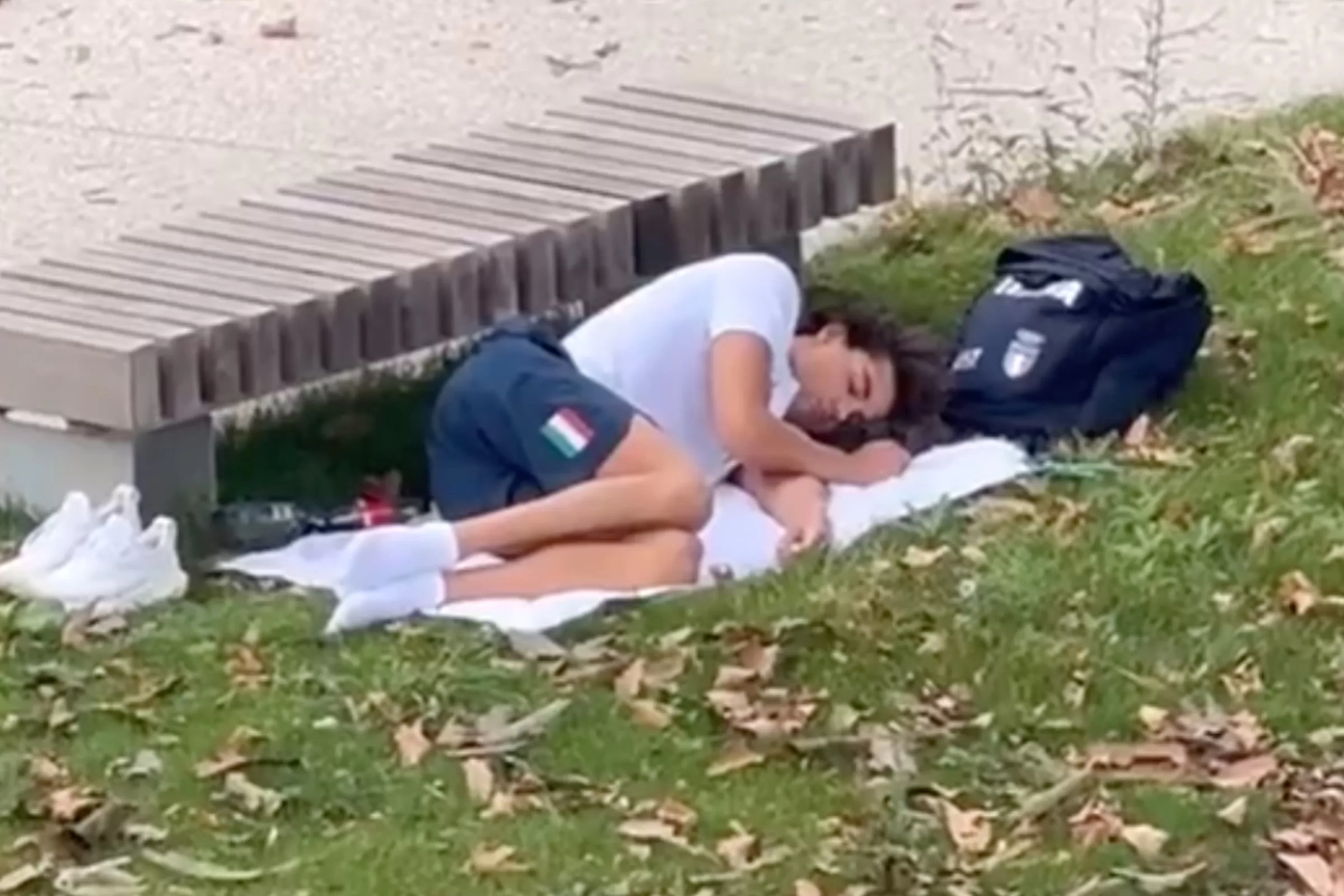 Il video è quello di Husein Alireza vogatore saudita alle Olimpiadi di Parigi 2024. Passeggiando per il villaggio degli atleti ha notato un ragazzo disteso con un asciugamano sull’erba sdraiato dietro una panchina, l’ha riconosciuto, e prontamente ha filmato la scena postandola sui Instagram. Si trattava dell’azzurro Thomas Ceccon, che ha colto l’occasione per schiacciare un pisolino all’aperto, appoggiato sul fianco sinistro con tutto il kit della nazionale addosso e lo zaino accanto.