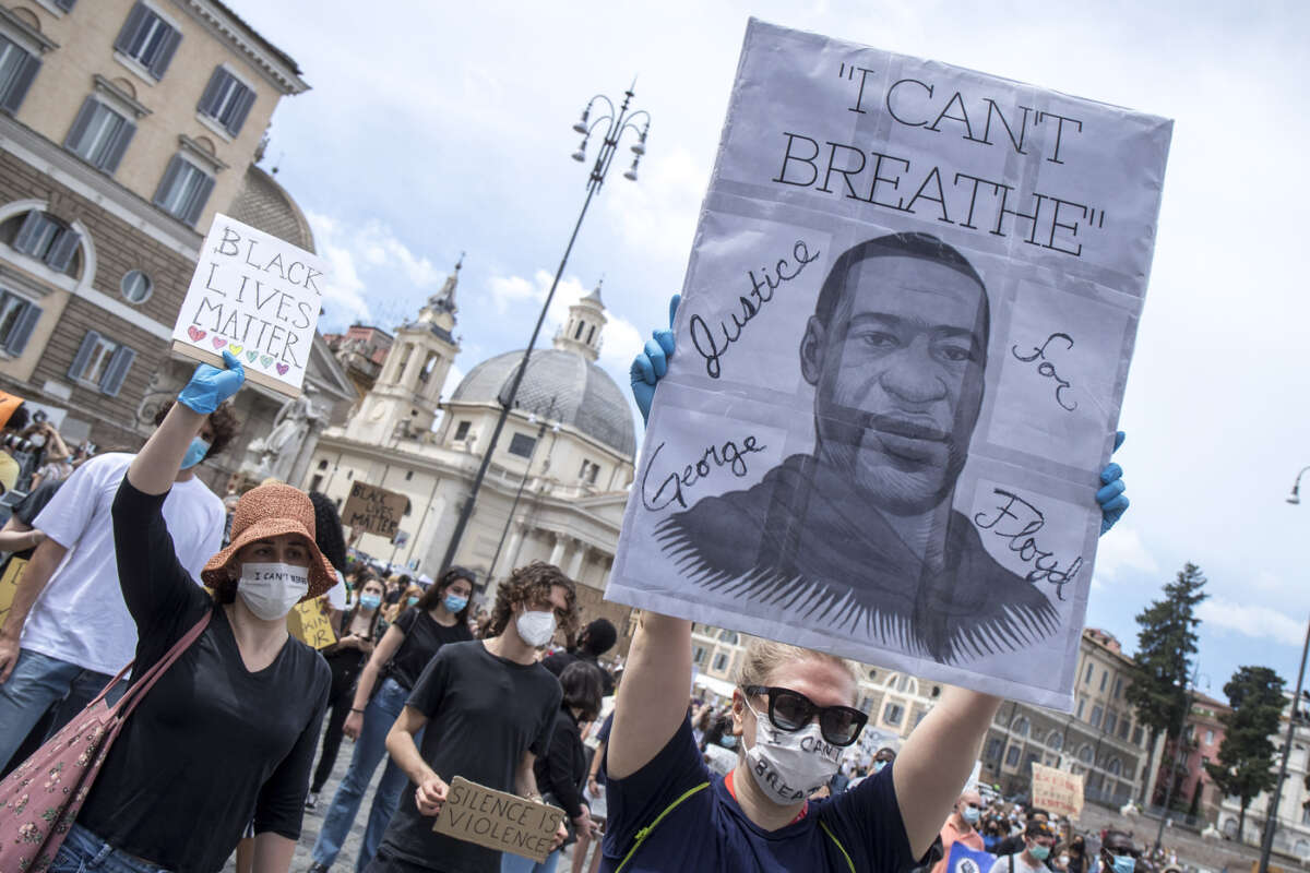 In migliaia, soprattutto giovani e famiglie, per un sit-in in piazza del Popolo, a Roma, per la manifestazione “I can’t breathe – black lives matter Roma“, promossa per ricordare George Floyd. Tantissime le persone che hanno così accolto l’appello lanciato via social dagli organizzatori, un vasto cartello di movimenti come Fridays for Future Rome, 6000 Sardine, Extinction Rebellion Rome International, American Expats for Positive Change e Women’s March Rome.