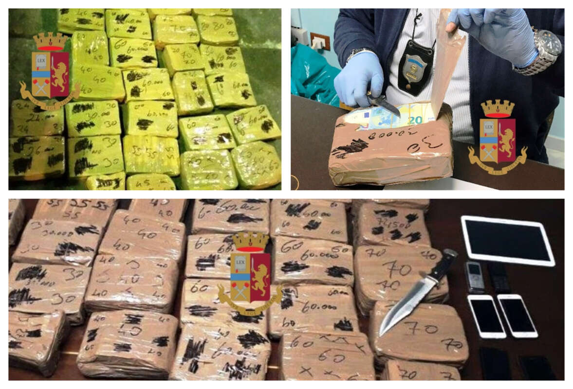 I poliziotti hanno recuperato 28 involucri di cellophane contenenti banconote di vario taglio per un totale di circa un milione e mezzo di euro. Sequestrati a bordo del trattore stradale un coltello a serramanico con lama di 28 centimetri, 7 telefoni cellulari e un tablet. Al termine della perquisizione i due uomini hanno tentato di scappare ingaggiando una colluttazione con gli agenti che li hanno bloccati. S. R., 36 anni (incensurato) e F. A. 48 anni (pluripregiudicato), entrambi di origini calabresi, sono stati arrestati per ricettazione, resistenza, oltraggio, lesioni personali e porto di armi od oggetti atti ad offendere. I poliziotti sono stati medicati in ospedale con una prognosi di 5 e 2 giorni.