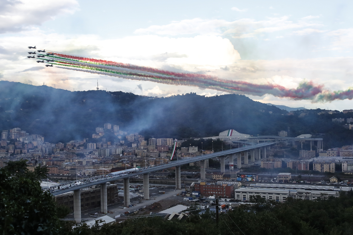 Con le frecce tricolori in volo, è stato inaugurato oggi, lunedì 3 agosto, il nuovo ponte San Giorgio di Genova a due anni di distanza dal terribile crollo del 14 agosto 2018 che provocò la morte di 43 persone. Il premier Giuseppe Conte, il sindaco di Genova e commissario per la ricostruzione Marco Bucci e il governatore della Liguria Giovanni Toti hanno tagliato il nastro per inaugurare il nuovo Ponte. Il tutto alla presenza del presidente della Repubblica Sergio Mattarella.