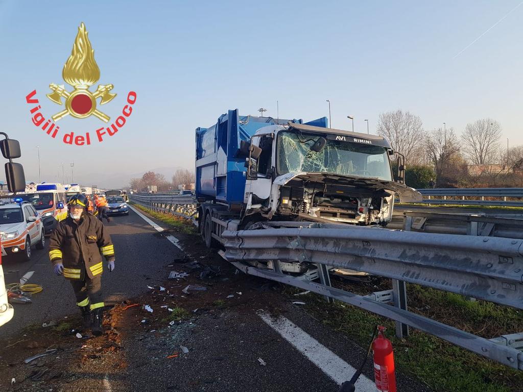 Ferito e soccorso anche il 59enne alla guida del camion, trasportato in ambulanze e in codice verde all’ospedale di Manerbio (Brescia) con un trauma ad un braccio, mentre il conducente dell’auto è rimasto coinvolto ma senza riportare conseguenze.