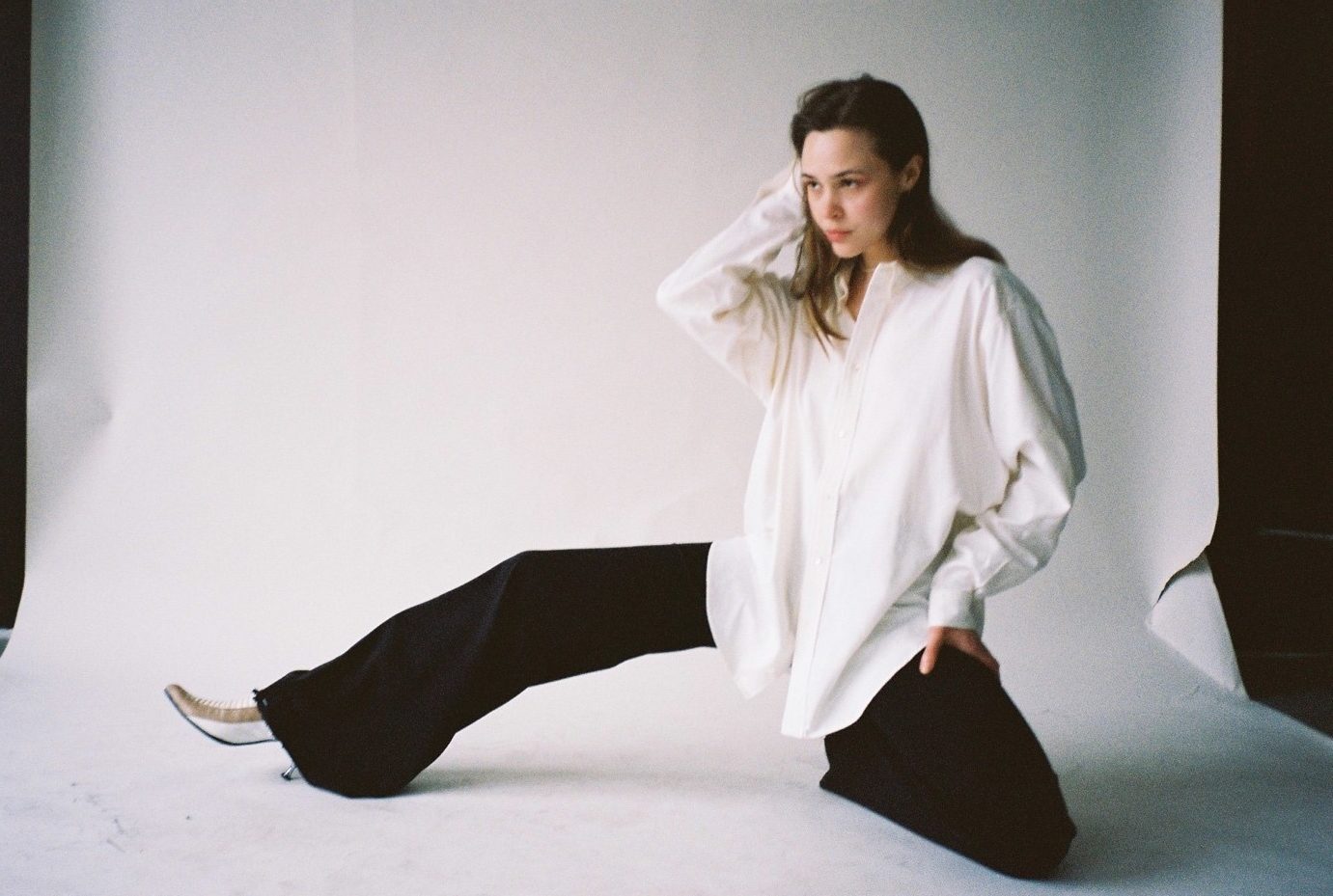 Una ricerca estetica fatta di camicie piene di immaginazione, dalla classica maschile in versione over a quelle dagli ampi volumi e dalle linee evocative, tutte rigorosamente dai tagli sartoriali, rifinite con maxi bottoni in madreperla.