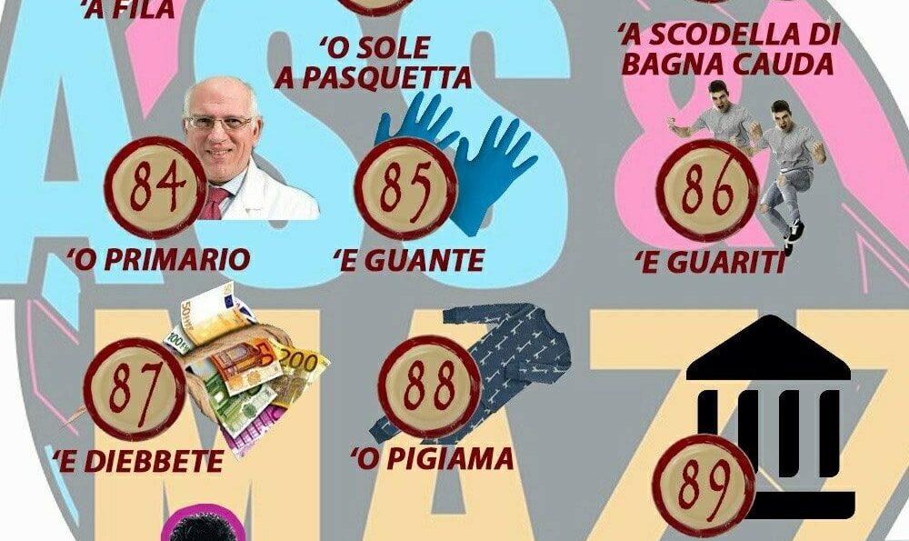 C’è “la mascherina” e c’è “il tampone” e “l’autocertificazione”. E poi c’è “o’governatore” e “o’sceriffo”, Vincenzo De Luca, presidente della Campania, “il vaccino” e perfino il fantomatico “assistente civico”. È la cosiddetta Tombola Asintomatica. Nata sui social, da un post di una pagina satirica, Ass & Mazz, da oltre 111mila follower, che ha dato vita a un gioco che ha riletto tutta la numerazione ironizzando sull’emergenza covid, il lockdown e tutti i suoi personaggi, oggetti e occasioni.