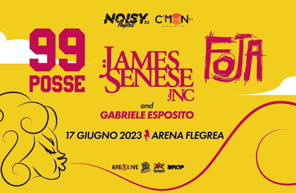 Un’esplosione di suoni meravigliosi sabato 17 giugno, a partire dalle 20.30 sul palcoscenico dell’Arena Flegrea di Fuorigrotta con 99 Posse, che, insieme alle nuove “Comanda la gang” e “Nero su bianco”, con cui sono tornati sulla scena per celebrare i loro 30 anni di musica, proporranno al pubblico brani iconici tra cui non mancheranno “Curre curre guagliò” e “L’anguilla”; James Senese JNC, che a quarant’anni dal primo album solista dal titolo “James Senese”, festeggia con l’uscita del suo ventiduesimo lavoro discografico e una lunga tournée estiva, con l’energia e la rabbia del suo sax e della sua voce unite alla batteria di Fredy Malfi, al basso di Rino Calabritto e alle tastiere di Alessio Busanca; e Foja, che travolgeranno la platea con i brani dell’ultimo “Miracoli e Rivoluzioni” e le preziose “’O sciore e ’o viento”, “’A Malìa” e “A chi appartieni”. L’opening act è affidato al giovanissimo e talentuoso Gabriele Esposito, cantautore e compositore, che dalle esibizioni in via Scarlatti al palco di X Factor, ora è impegnato in una carriera cantautorale e in live dove esegue suoi brani inediti, con l’ultima arrivata “L’Unica” che è già un successo. Da oggi, prevendite aperte su ETES. Ingresso 15 euro+prevendite.
