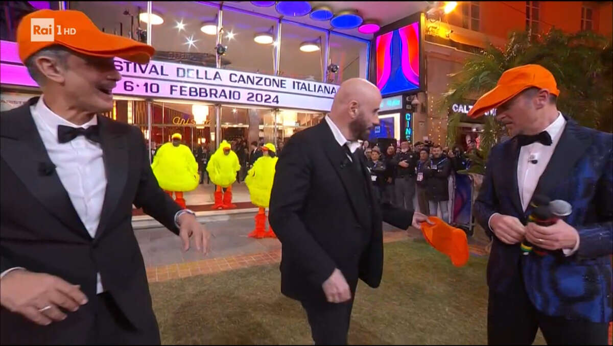 E dopo qualche prova, l’americano dalle origini sicule si cimenta nel balletto. In silenzio esegue, ma con evidente imbarazzo quando un papero gli porge un berretto dalla visiera pronunciata, che Fiorello e Amadeus indossano subito, lui rifiuta l’invito lanciandolo a lato della scena: “Non mi sta”. Come a dire, “Le mascotte, stasera, le abbiamo già viste”.