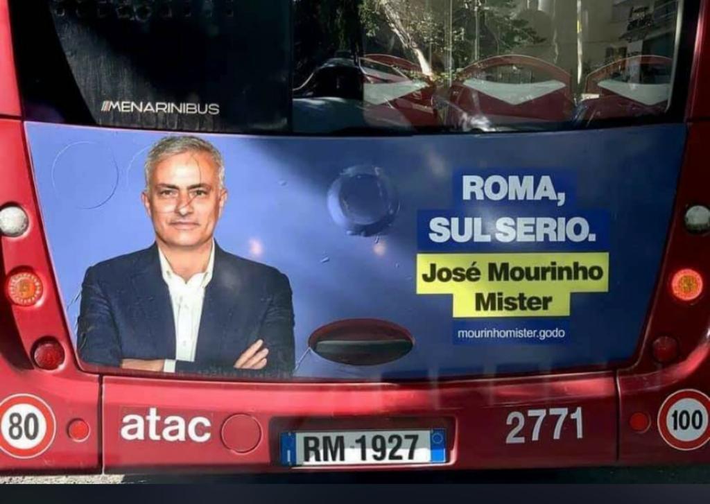 Tra Mourinho e Roma è già scoppiato l’amore. Anche se il nuovo allenatore giallorosso non è ancora sbarcato nella Capitale (sta facendo gli ultimi giorni di vacanza prima di buttarsi a capofitto nella nuova avventura italiana) i tifosi romanisti già lo amano. Spuntano come funghi murales a mo’ di insegne votive, la faccia dello Special one viene messa dai menu nei ristoranti alle gelaterie che creano gusti dedicati a Mou. Sul web poi c’è la massima espressione della genialità e ironia tipicamente romana. L’oscar va senza dubbio alla versione “politica” del tecnico portoghese: sfruttando lo spot elettorale di Carlo Calenda sui bus dell’Atac l’immagine dello Special One sorridente ha fatto in poche ore il giro del web, rimbalzando dalle chat Whatsapp e via social. Lo slogan è lo stesso scelto dal leader di Azione in corsa per il Campidoglio: Roma sul serio. La targa del bus? Naturalmente 1927, l’anno di nascita dell’As Roma.