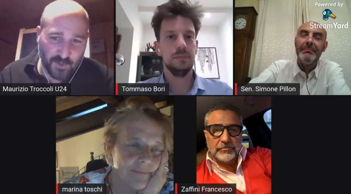 Quando Zaffini confonde le due pillole la reazione di stupore degli altri ospiti, tra cui il senatore leghista ultracattolico Simone Pillon (commissario della Lega in Umbria) è evidente, così l’esponente di FdI prova a ‘salvarsi’ spiegando che la Ru486 verrebbe usata come metodo contraccettivo.