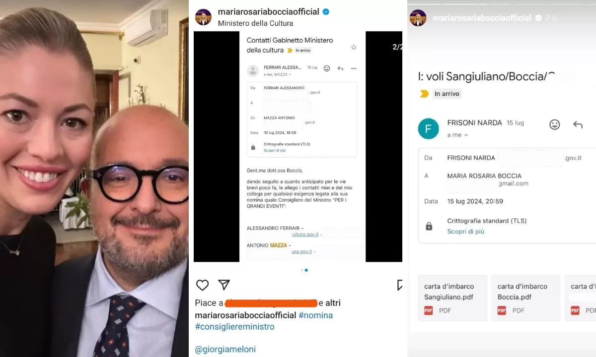 Selvaggia Lucarelli sul “Fatto” è andata a conoscere meglio la signora, sfogliandosi tutte le sue gallery di Instagram (la gallery è un format che permette di caricare e visualizzare più immagini o video all’interno di un unico post, facendo “swipe” cioè scorrendo il dito). Bene, vengono fuori tantissime eloquenti foto di Genny (Sangiuliano), alcune delle quali corredate da tenerissimi epiteti da lei a lui. Scopriamo ad esempio, che se Berlusconi per le sue girls era “papi”, per Maria Rosaria il ministro è “baby”.
