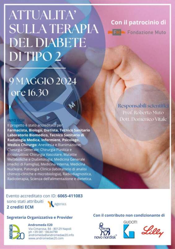 L’evento è patrocinato dalla Fondazione Muto e realizzato con il contributo non condizionante delle aziende farmaceutiche Guidotti, Novo Nordisk e Lilly. La Fondazione ha nella propria mission la promozione di iniziative di prevenzione, campagne di sensibilizzazione e programmi di gestione di patologie tra le quali quella del diabete per affrontare questa sfida sanitaria in modo efficace, in contesti formativi, scolastici e sanitari. Il convegno costituisce anche un’occasione di aggiornamento professionale, è stato infatti accreditato presso l’AGENAS per diverse discipline mediche e scientifiche, garantendo crediti formativi per farmacisti, biologi, dietisti, tecnici sanitari, infermieri, psicologi e medici di varie specialità, con il provider Andromeda E20.