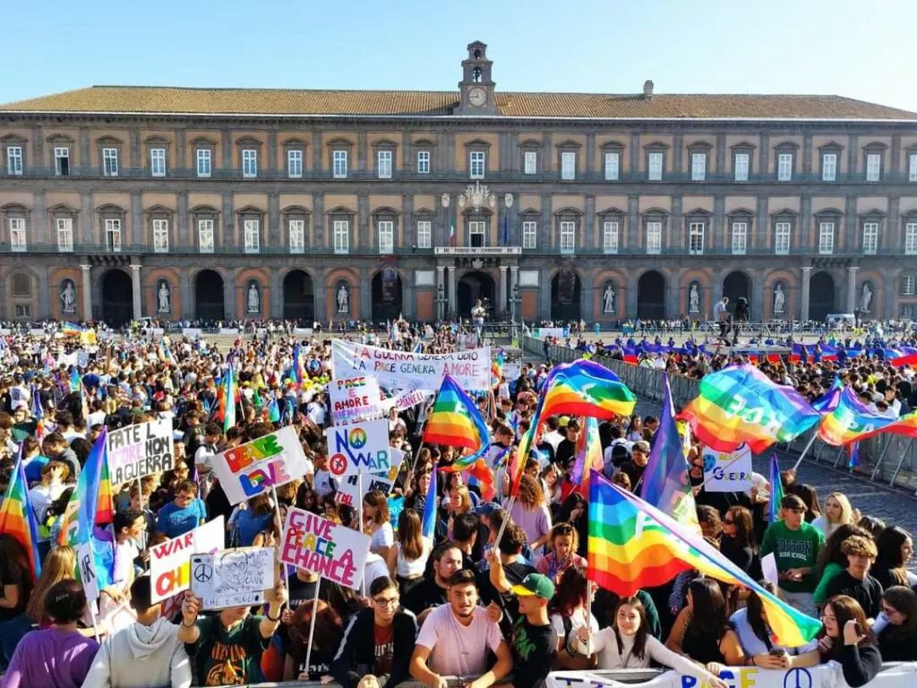 Centinaia di migliaia di euro che la Regione Campania ha sborsato per organizzare il raduno di ieri in piazza Plebiscito, centinaia di migliaia di euro di soldi pubblici: sviamento di risorse verso un fine estraneo alle competenze regionali. Questa è stata l’iniziativa promossa dal governatore campano Vincenzo De Luca che felice ha affermato: «In piazza siamo più o meno 50mila persone, moltissimi ragazzi che chiedono la pace». In realtà fonti ufficiali riferiscono di 25mila persone più o meno e soprattutto i ragazzini che cantavano e sventolavano la bandiera della pace non è che l’hanno scelto da soli di andare al raduno di De Luca: o andavano o sarebbero risultati assenti a scuola.