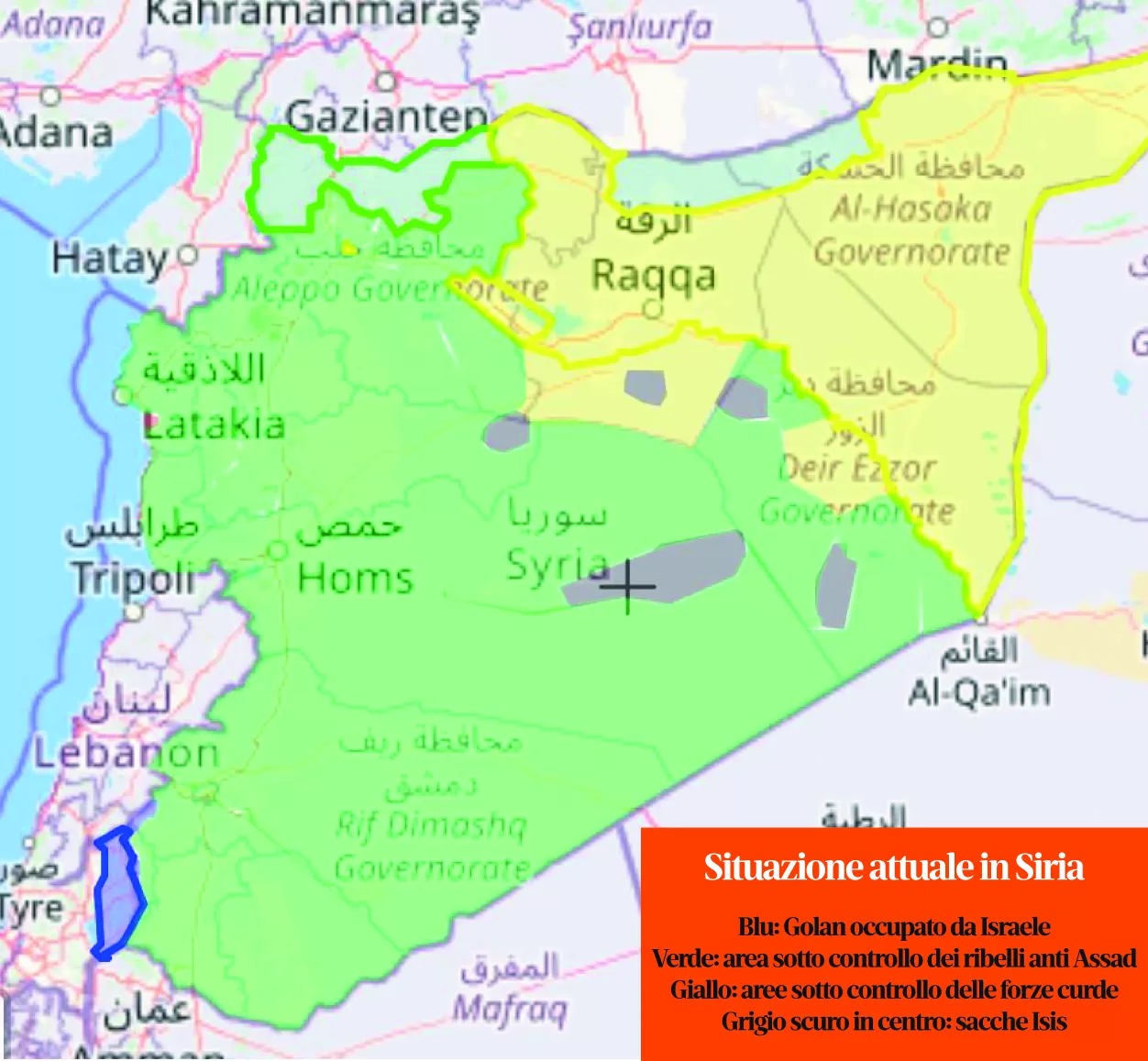 La Siria è quantomeno spaccata in due. Il nord-est è completamente sotto il controllo curdo e delle milizie guidate dalle Forze democratiche siriane. Elementi che non sembrano affatto pronti a cedere le armi né le proprie prerogative, visto che ai