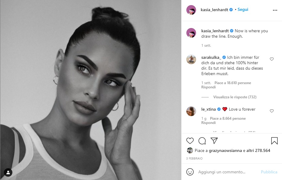 La modella e Jerome Boateng, il difensore del Bayer Monaco, avevano annunciato poco più di una settimana fa, su Instagram, la fine della loro relazione durata 15 mesi. Il calciatore infatti ha condiviso lo scorso 2 febbraio un messaggio di scuse: “Come è noto dai media, ho concluso la relazione con Kasia Lenhardt. D’ora in poi andremo per strade separate. È deplorevole, ma per la mia famiglia e per me è l’unica via giusta. Ho dovuto fare questo passo e tracciare una linea. Chiedo scusa a tutti quelli che ho ferito soprattutto con la mia ex ragazza Rebecca e i nostri figli. Anch’io sono deluso da me stesso. Un uomo deve assumersi la responsabilità e agire nell’interesse della sua famiglia e lo sto facendo ora. Auguro il meglio a Kasia”. Subito dopo la rottura, la testata giornalistica tedesca Bild aveva pubblicato un articolo riguardante un’incidente avuto in auto dalla modella che si era schiantata contro un lampione a causa del tasso alcolico alto.