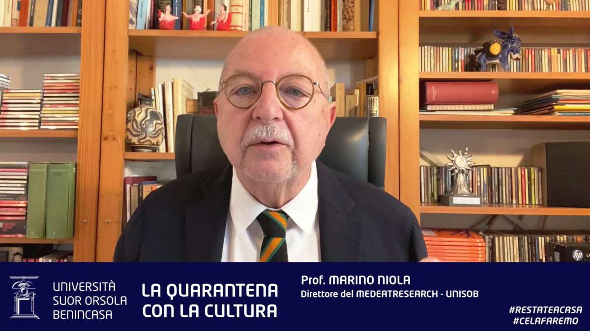“La messa in onda è finita andate in pace”. Così l’antropologo Marino Niola, direttore del MedEatResearch dell’Università Suor Orsola Benincasa, inizia il suo racconto de “La Pasqua digitale al tempo del Coronavirus”. Il suo intervento insieme con quello dell’archeologo Federico Marazzi e dello storico delle religioni Ottavio Di Grazia costituirà la triade pasquale delle pillole video de “La quarantena con la cultura”, la rassegna ideata dall’Università Suor Orsola Benincasa per trasmettere quotidianamente sul suo canale You Tube fino al 10 Maggio un ricco palinsesto di nuove conferenze di ampio spettro tematico (dal cinema alla letteratura) durante il periodo di ‘clausura’ imposto dall’attuale emergenza sanitaria.