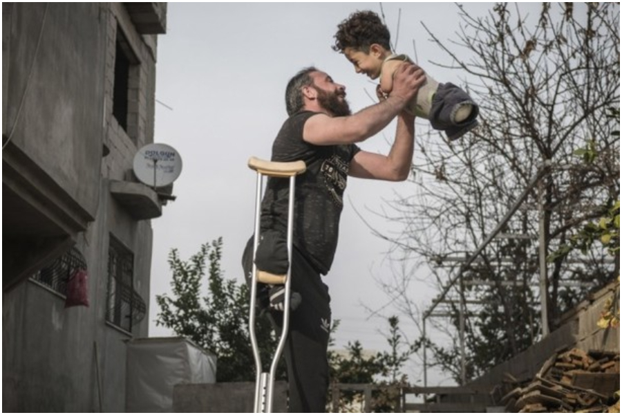 “Hardship of Life”, “Le difficoltà della vita” è il titolo dello scatto, realizzato dal fotografo turco Mehmet Aslan, e racchiude la speranza di due persone di superare gli ostacoli della vita. L’immagine è stata scattata nel distretto di Reyhanli, nella provincia turca di Hatay al confine con la Siria, e cattura il momento in cui un uomo senza gamba, persa a causa di una bomba, prende in braccio il figlio, nato nel 2016 senza gli arti inferiori né quelli superiori a causa di una malformazione, la tetramelia, dovuta all’assunzione di farmaci da parte della madre Zeynep, colpita durante la guerra dal gas nervino.