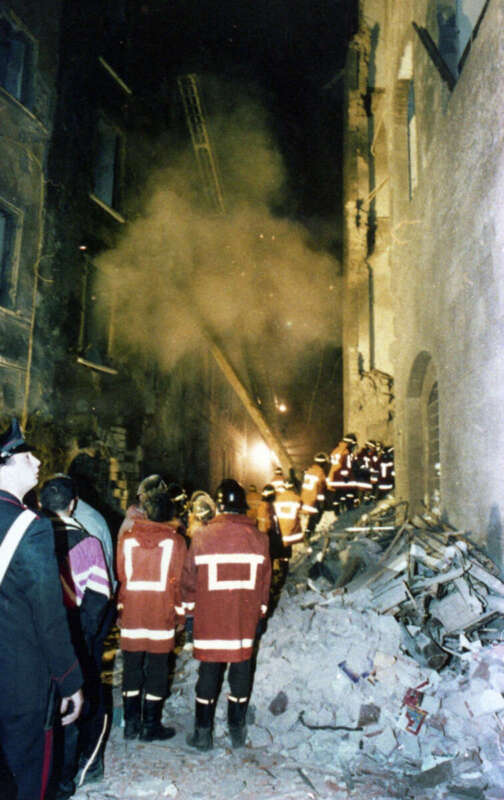Via Lambertesca era coperta da una strana polvere, era tutto grigio, l’odore insopportabile, le fiamme, cadono tegole dai tetti. Si prova a prenderla un po’ più larga, in Chiasso del Buco si entra, anche in chiasso dei Baroncelli fino ad un “dove” irriconoscibile, via Lambertesca, appunto, all’angolo con via dei Georgofili. Quella che prima sembrava “nebbia” da qui è chiaro che sono macerie e polvere. La fine del mondo era arrivata a Firenze, a cento passi da piazza della Signoria. I colleghi junior, io, Fabio e Gianluca, rimaniamo lì, un cellulare in tre. Il caporedattore intanto ha avvisato Roma che è necessario ribattere perché “l’esplosione, se anche fosse gas, ha attaccato il cuore del Rinascimento”. I senior, si erano aggiunti Paolo Vagheggi e Franca Selvatici, vanno in redazione, in via Maggio, a scrivere. Noi restiamo lì, vedere, capire, annotare, restare lucidi. Non fu facile. Tutto è stato irripetibile. E indimenticabile. Metto qui in fila qualche frammento di quella notte. Quelli per me decisivi. Via via che si posa un po’ la polvere, cessano gli allarmi e turisti e residenti sono ormai lontani, resta il rumore dei generatori elettrici e delle pompe d’acqua, l’odore di qualcosa che è anche gas ma non solo e una montagna di macerie davanti agli occhi.