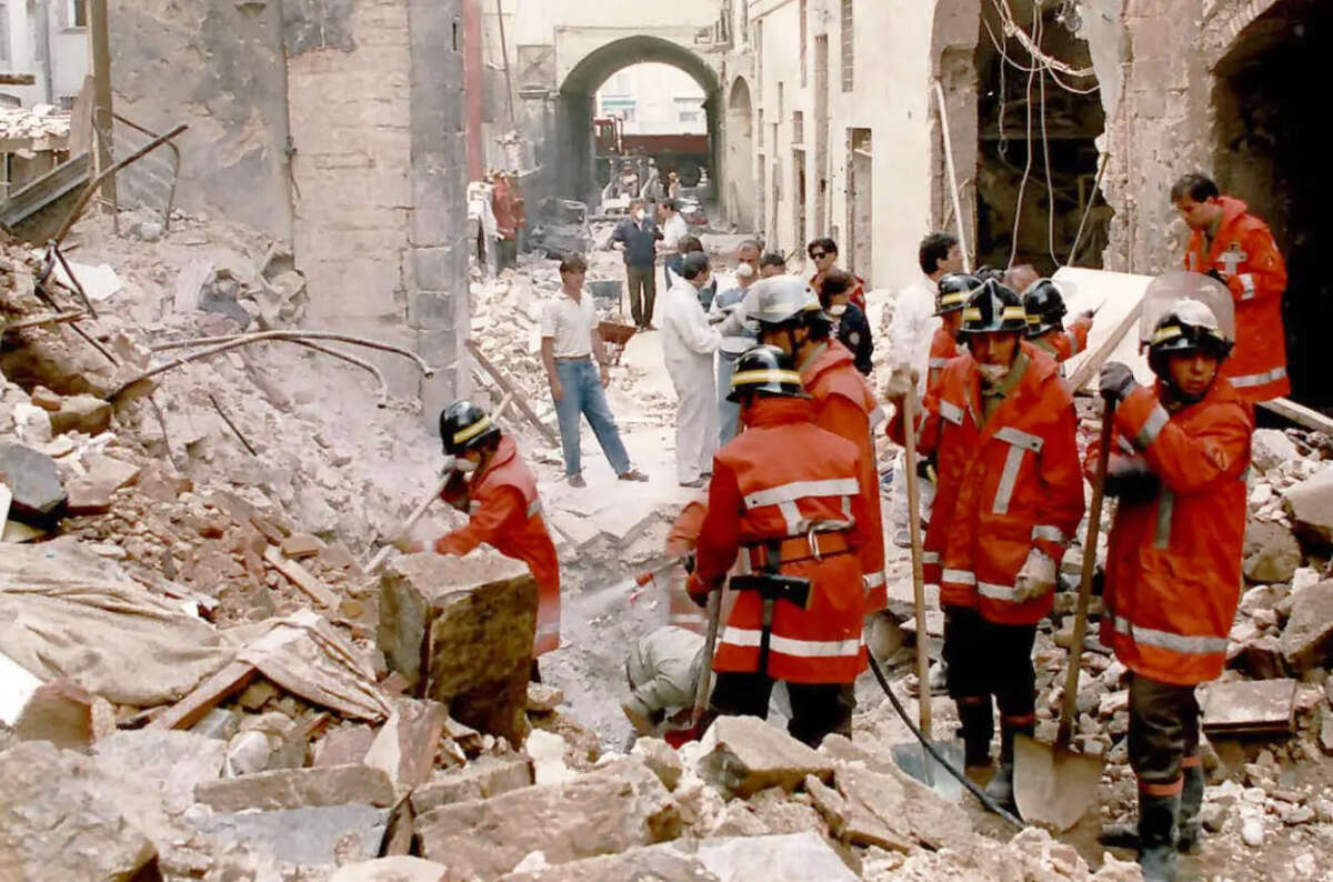 Il cratere lasciato dal Fiorino imbottito con 277 chili di esplosivo (tritolo, T4, pentrite, nitroglicerina) verrà fuori solo dopo giorni (3 metri di larghezza e due di profondità). Quella notte si vedono solo macerie e macerie e macerie. I periti scrissero che l’esplosione provocò “la devastazione del tessuto urbano del centro storico per un’estensione di ben 12 ettari, con un impatto bellico”. Alzando gli occhi, davanti a quella che era la torre del Pulci, ci sono finestre aperte e soffitti a cassettoni anneriti. Una casa affittata da studenti. I vigili del fuoco hanno provato a salvare Dario Capolicchio ma le fiamme avevano già mangiato la casa. Gas, solo gas? Dopo un po’ di tempo, non so dire quanto, ma prima che venga estratto il fagotto con i resti della piccola Nadia, cammina in questa devastazione il capo della Digos, Franco Gabrielli, con un paio di uomini. Hanno gli occhi all’insù, sono sgomenti, guardano la parete antistante all’accademia rimasta miracolosamente in piedi.