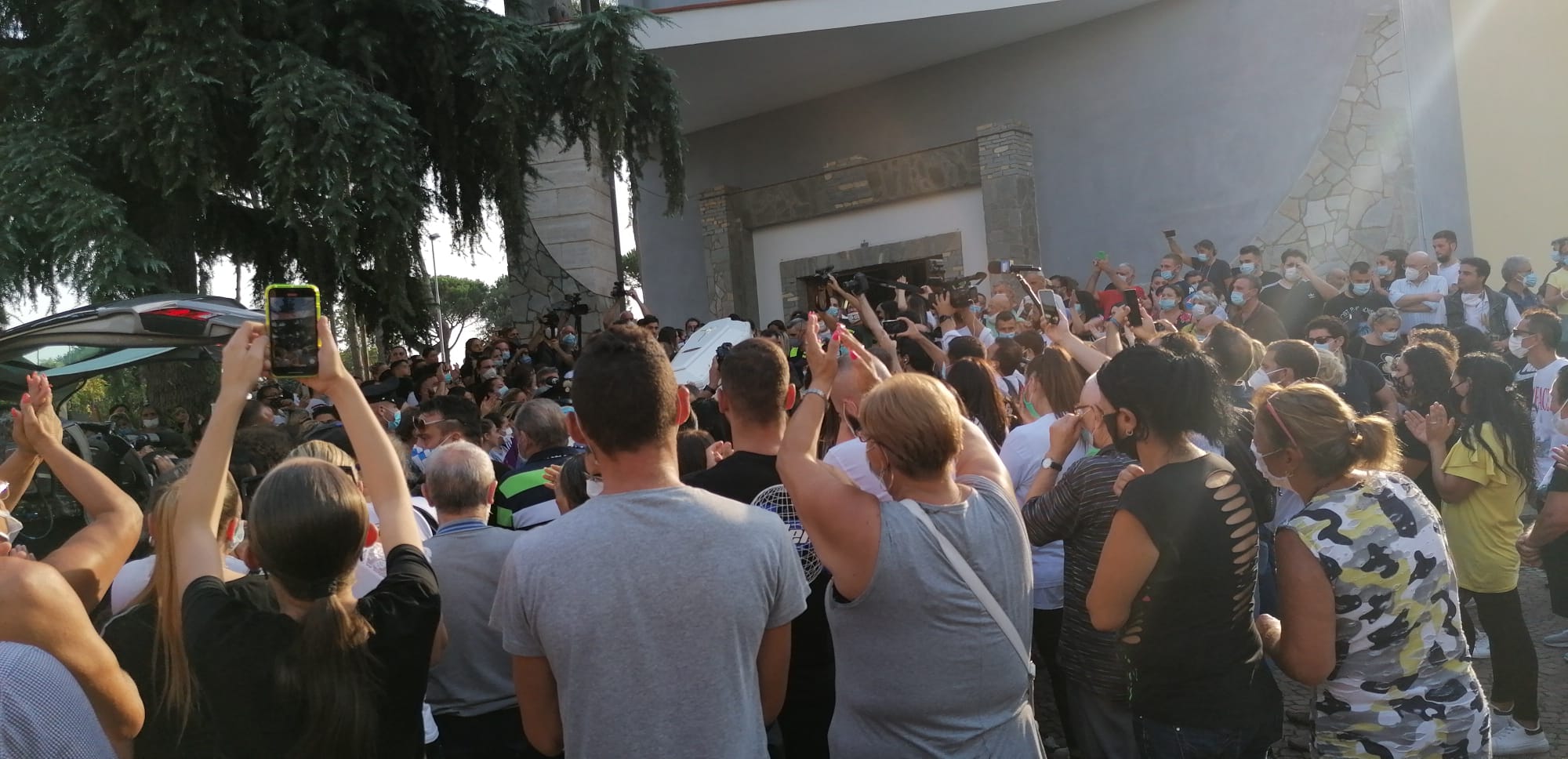 L’ARRIVO DEL FERETRO – Circa 200 le persone che si sono affollate davanti alla chiesa, solo una parte ovviamente è potuta entrare al suo interno, dovendo rispettare le misure di distanziamento sociale. La bara bianca di Maria Paola è stata accolto dal lungo applauso dei presenti e dai palloncini bianchi portati dalle amiche della vittima, mentre sulla bara sono stati posti dei fiori bianchi accompagnati dalla fascia con la scritta “Mamma e papà”.
