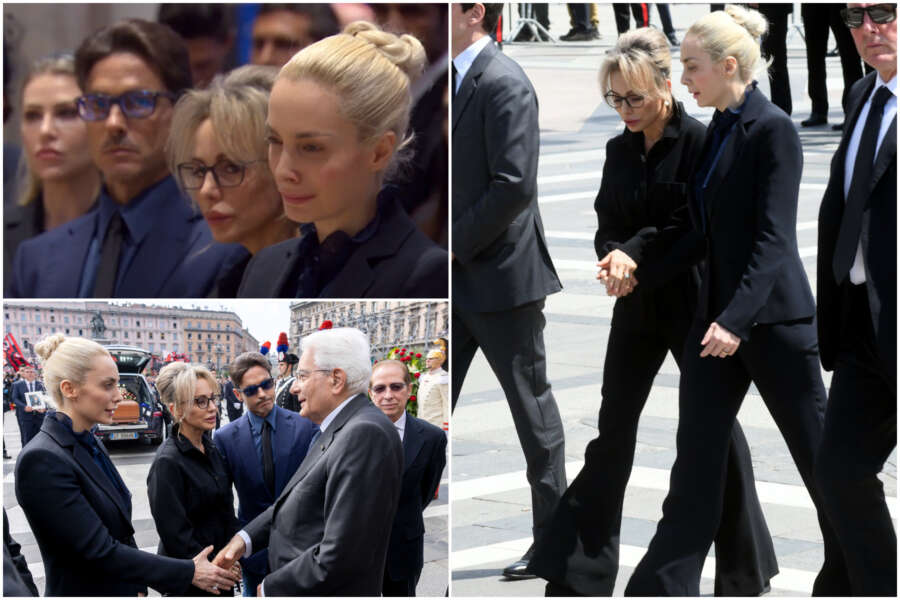 L’unica a violare il dress code è stata la conduttrice Mediaset Maria De Filippi, vestita in bianco. Le figlie più giovani del Cavaliere, Barbara ed Eleonora, elegantissime e in nero, quasi rigorose nell’atteggiamento e nei look. Pier Silvio sportivo in giacca e camicia blu e jeans. Giacca e pantalone sopra camicia scura anche per l’ex moglie Veronica Lario e la primogenita Marina.