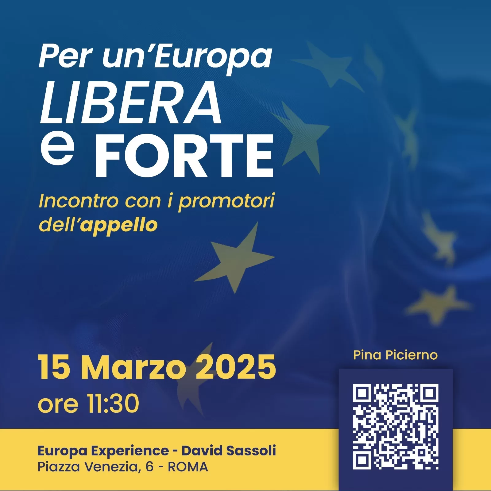 L’altro appuntamento di oggi, ben distinto da quello di piazza del Popolo, è per le 11:30 nell’Europa Experience “David Sassoli” di piazza Venezia, 6 a Roma. In quella sede avrà luogo l’incontro con i promotori dell’appello, che ha superato le 5mila adesioni, “Per un’Europa libera e forte”, lanciato dalla vicepresidente del Parlamento Europeo, Pina Picierno. L’appello, si legge nel testo, «nasce dall’urgenza invariata che il Manifesto di Ventotene tracciò durante il secondo conflitto mondiale, per un’Europa federale e per un nuovo europeismo in difesa delle democrazie liberali e delle libertà dei popoli».
