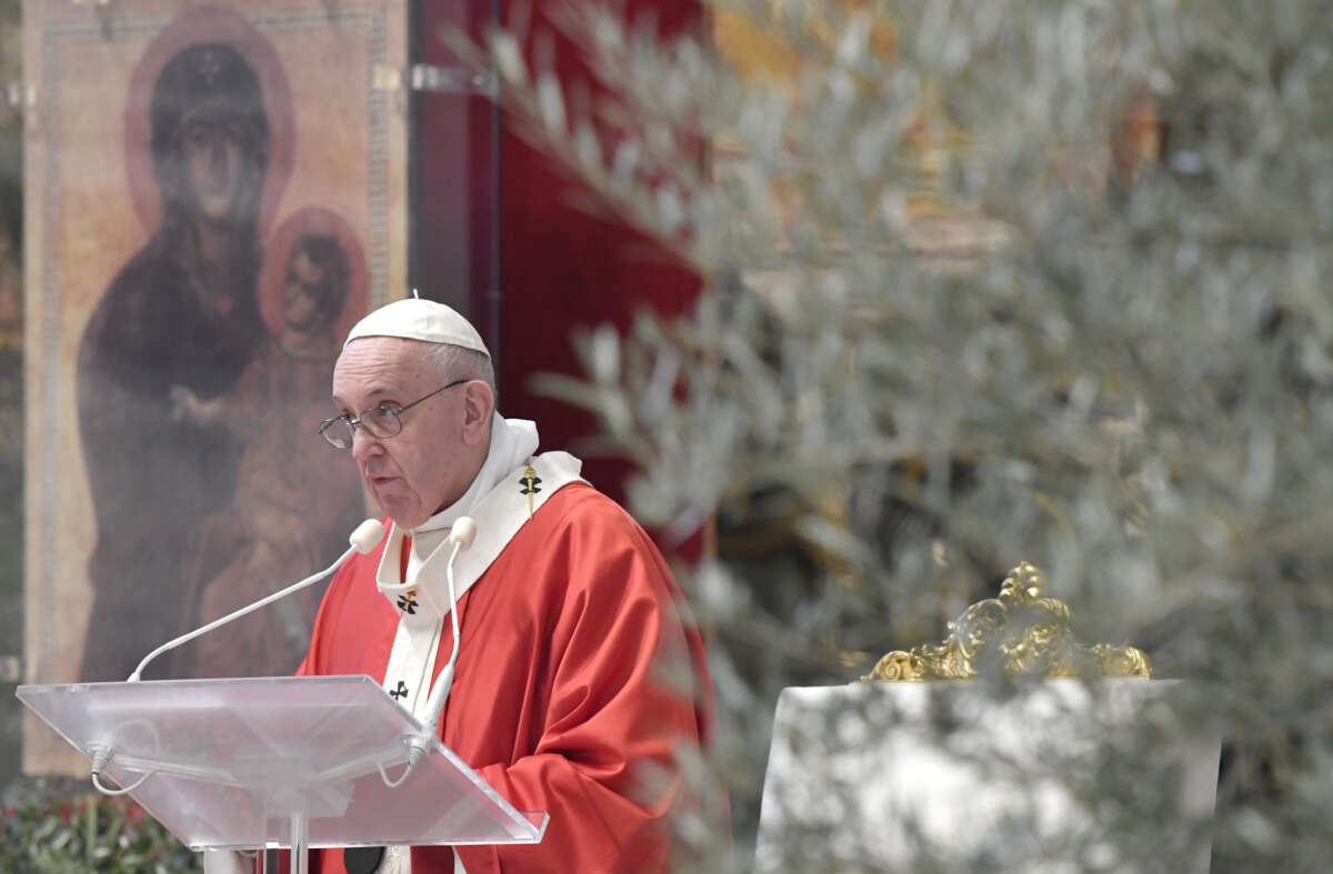 Penso ad un problema grave che c’è in parecchie parti del mondo. Io vorrei che oggi pregassimo per il problema del sovraffollamento nelle carceri. Dove c’è un sovraffollamento – tanta gente lì – c’è il pericolo, in questa pandemia, che finisca in una calamità grave. Preghiamo per i responsabili, per coloro che devono prendere le decisioni in questo, perché trovino una strada giusta e creativa per risolvere il problema (…). I poveri: ce ne sono tanti, in gran parte sono nascosti e non li vediamo perché siamo indifferenti. Tanti poveri sono vittime delle politiche finanziarie e dell’ingiustizia strutturale dell’economia mondiale. Tanti poveri si vergognano di non avere mezzi e vanno alla Caritas di nascosto. I poveri li incontreremo nel giudizio finale: Gesù si identifica in loro. Saremo giudicati sul nostro rapporto con i poveri. (…) Vorrei oggi soffermarmi su una parola di Gesù. Sei giorni prima della Pasqua – siamo proprio alla porta della Passione (…).