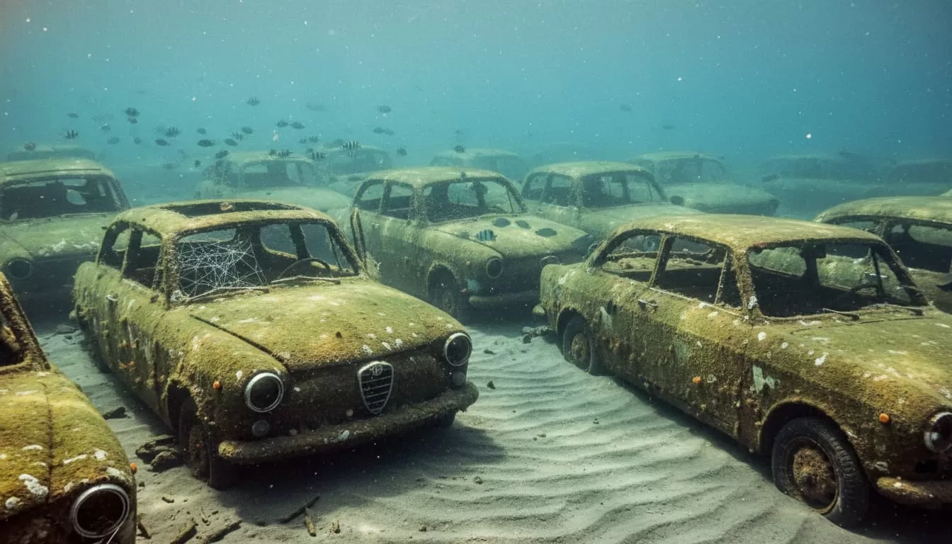 Le vetture vennero così bonificate degli oli del motore e della benzina, e vennero trasportate su delle chiatte nelle acque antistanti Varazze. Con le batterie, le vernici e tutto ciò che poteva ancora inquinare vennero scaricate in mare in un punto di circa 50 metri di profondità. Una sorta di discarica sommersa, non visibile dalla superficie, ma la cui presenza è confermata da foto e filmati d’epoca e dai pescatori della zona. Infatti negli anni il luogo è diventato un punto di pesca molto prolifico, ed è molto complicato stabilirne l’impatto ambientale. A oltre cinquant’anni di distanza, quelle carcasse giacciono ancora sul fondale, trasformate dal tempo e dalla salsedine, molte sommerse in parte o completamente dalla sabbia. In parte colonizzate dalla fauna marina, rappresentano oggi un caso emblematico di come, nel passato, le emergenze venissero affrontate senza una piena consapevolezza delle conseguenze ambientali.