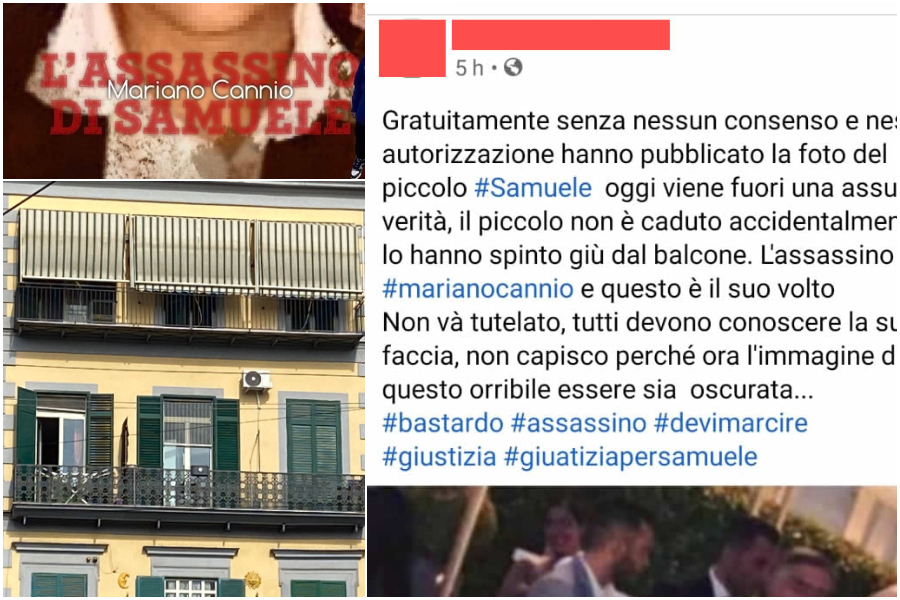 I giustizieri del web dicono che “non va tutelato”: alcuni prima lo definiscono “presunto assassino”, poi però stabiliscono che la sua “immagine deve essere di dominio pubblico e non censurata perché la gente deve sapere chi è”. Insomma una giustizia fai da te a mezzo social che ha già dato del colpevole a Cannio e stabilito la dinamica di quello che, per il web, è senza ombra di dubbio un omicidio: l’uomo, infatti, ha preso Samuele in braccio e senza alcuna pietà l’ha buttato giù.