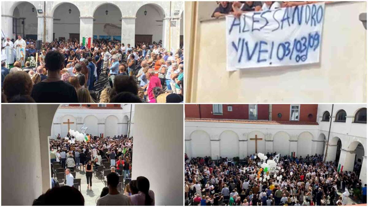 Una folla di amici, familiari e cittadini di Gragnano è accorsa nel chiostro di sant’Agostino per l’ultimo saluto al 13enne. Sulle magliette bianche c’era stampata la foto del ragazzo e la scritta “Alessandro Vive”. Palloncini bianchi, lacrime e applausi hanno accompagnato la cerimonia. Alla fine alcuni amici hanno letto alcune lettere. Tra questi anche l’insegnante delle medie. “Eri speciale – ha scritto la professoressa – di una tenerezza infinite, con quei tuoi modi riuscivi a fare breccia nel cuore di tante ragazzine che facevano a gara per attirare la tua attenzione e tu nemmeno te ne accorgevi. Nessuno ti dimenticherà mai, ricordo quando durante le pause in classe parlavamo dei tuoi innamoramenti. Spero che adesso hai imparato a volare, hai recuperato anche l’ala che ti mancava. Addio piccolo angelo del paradiso. Eri un dono, non siamo riusciti a farti percepire il nostro amore”.
