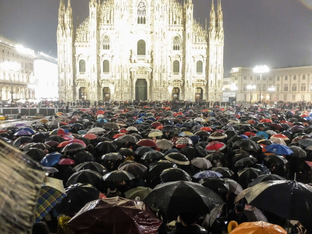 In 25mila hanno sfidato freddo e pioggia e si sono presentati in piazza Duomo a Milano per partecipare alla mobilitazione delle Sardine. Tra il mare di ombrelli, tanti giovani e giovanissimi, che hanno portato in piazza anche i loro genitori e nonni. Tra loro anche Roberto Saviano che ha preso la parola dal palco per salutare una piazza che ha definito “bellissima” come “laboratorio politico” dell’Italia del futuro.
