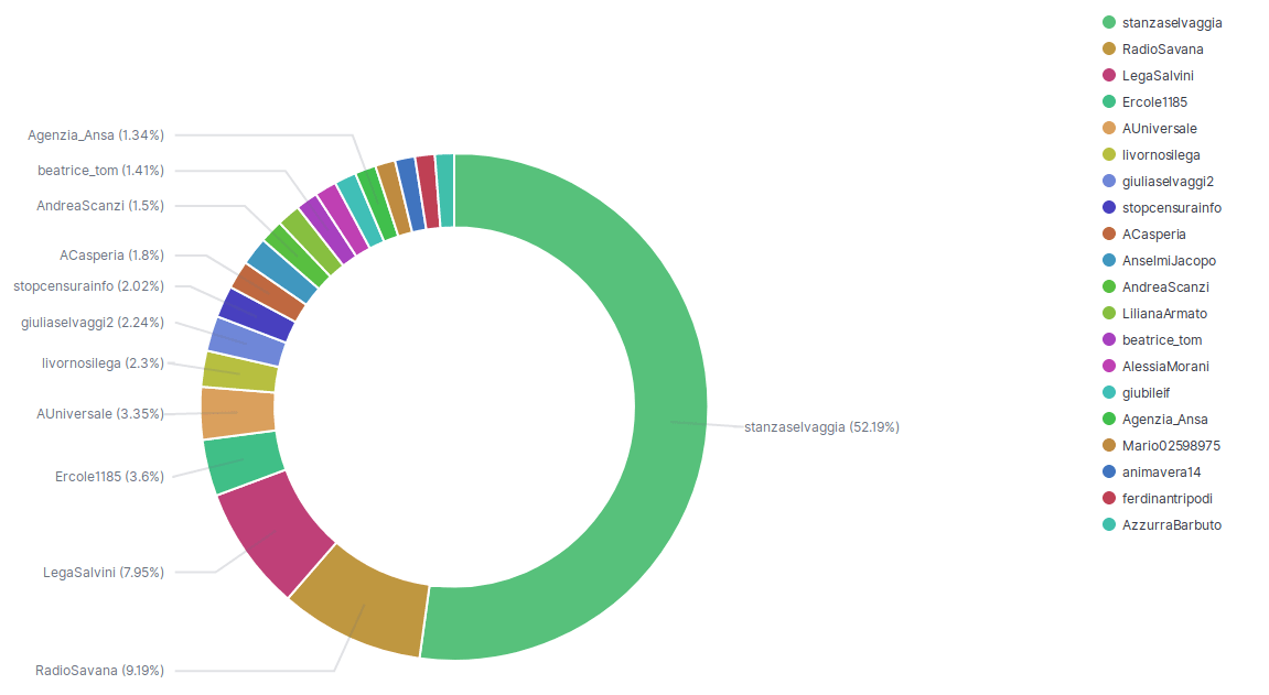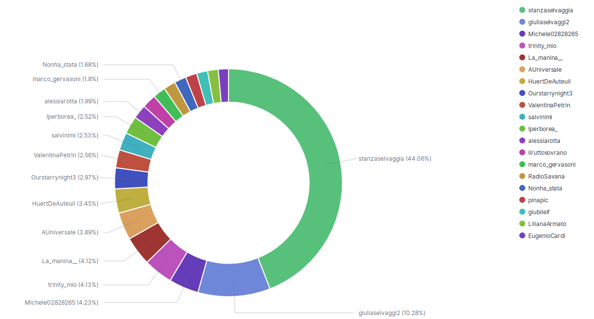 La quantità di risposte fa comprendere anche come ha reagito il pubblico ai vari top tweets. Non è un caso che in un momento dove una buona parte della rete ha caldeggiato le posizioni di Selvaggia Lucarelli a subire maggiori pareri del pubblico siano i profili della Lega e Radio Savana vicina alle posizioni di Salvini.
