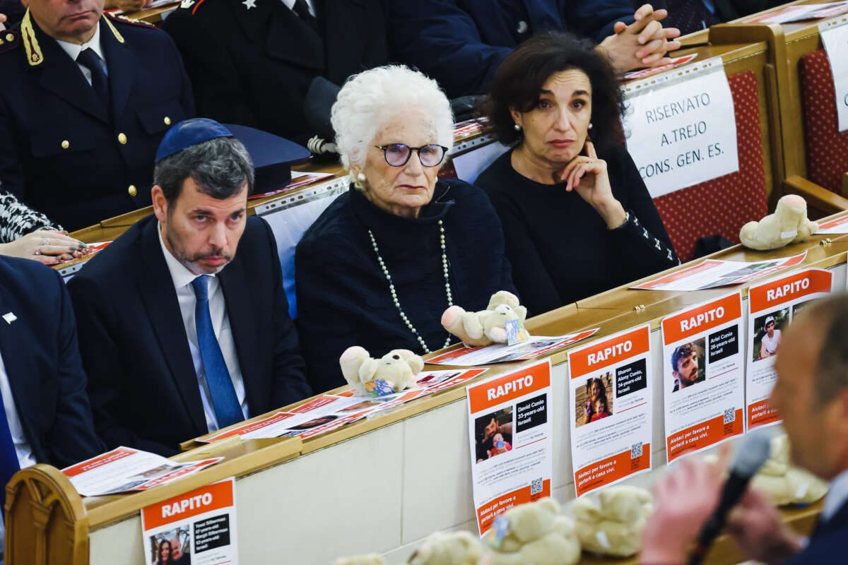 L’atmosfera ha una sua certa, compostissima gravità. Sui monitor scorrono le foto degli ostaggi in mano ad Hamas. Salgo sul palco. Io, atarassico quando c’è da parlare in pubblico, avverto una tensione quasi paralizzante. Sapevo da prima, e capisco entrando in Sinagoga, che in quel tempio aleggiano paura, dolore, dispiacere e speranza. Ma anche incredulità e mortificazione. Per come alcuni nostri connazionali rivolgano grida di odio a gente che ne ha passate di ogni, che è sopravvissuta ai campi di sterminio e vorrebbe solo vivere in pace. Per come sembra rivivere un conato di barbarie che segna i volti di questo popolo mortificato dall’antisemitismo.