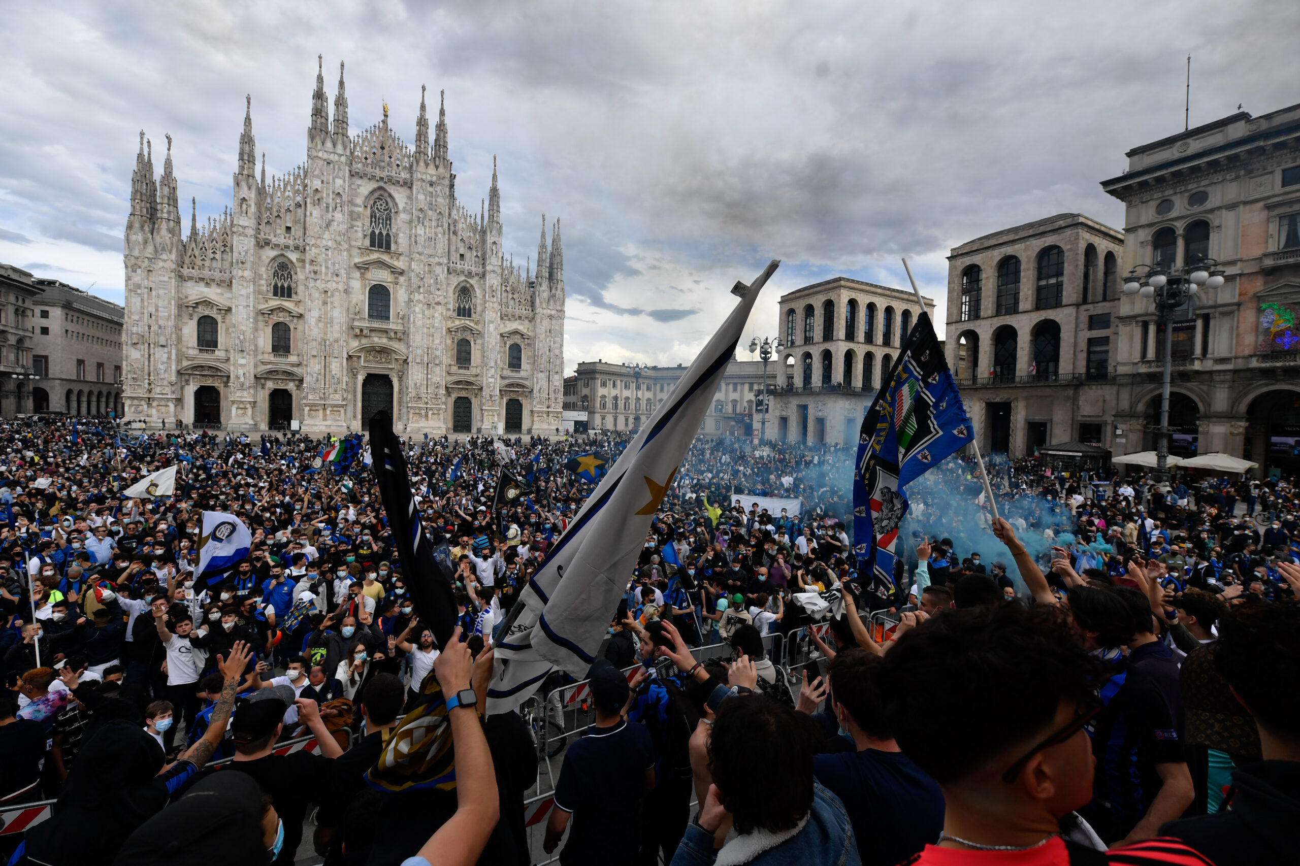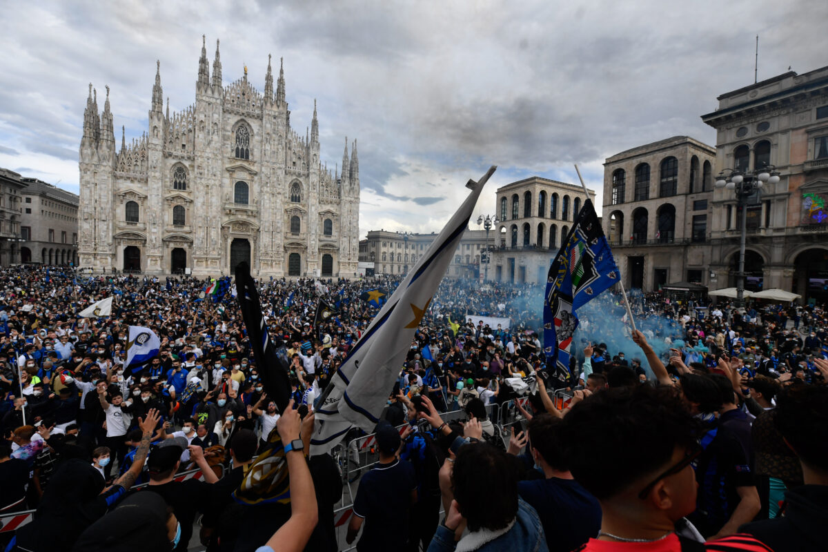 Pochi minuti dopo la fine di Sassuolo-Atalanta, che ha sancito la vittoria del 19° Scudetto, migliaia di tifosi dell’Inter hanno invaso Piazza Duomo in Milano per festeggiare. In barba ad ogni indicazione anti Covid-19, tra i fans nerazzurri è esplosa la gioia dopo oltre dieci anni di astinenza da vittorie.