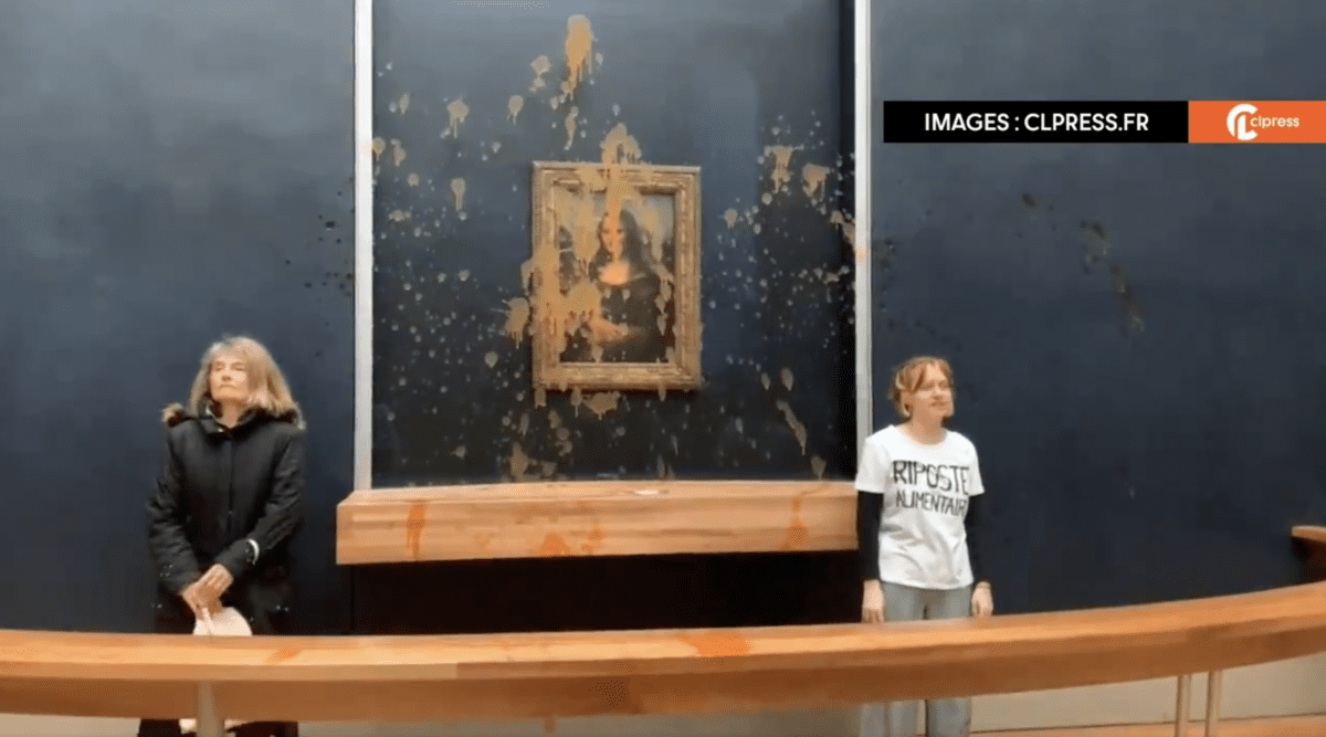 Al museo del Louvre, a Parigi, alcuni attivisti francesi hanno versato della zuppa sulla Gioconda.